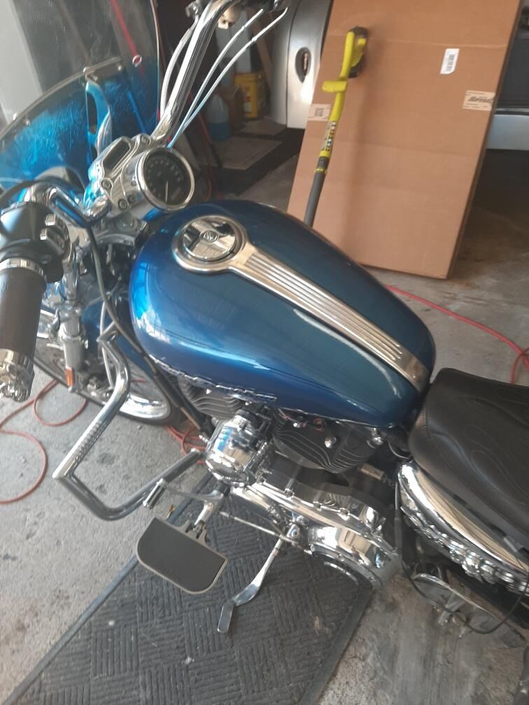 2005 Harley-Davidson 1200 Custom Sportster Motorcycle. In great condition. 16,800 miles Comes with all the fancy upgraded chrome done in chrome skulls. backrest, Rack and luggage bags, Passenger and Drivers foot boards Windshield, After market seat by drag specialties. Vance Hines pipes, Engine guard. Fancy mirrors. Beautiful Blue color. I Have motorcycle vehicle report and clear title. May need carburetor work has not been started for a long time Asking $3,600.00 obo 801-631-3628