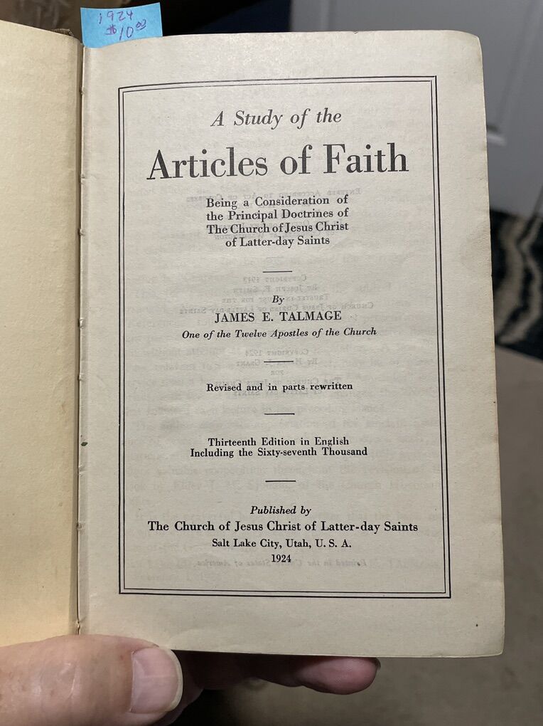 Venmo101 year old Mormon / LDS faith book in nice condition. Brown hardcover, 537 pages. Some wear and bumped corners and a few pages with some underlined text. A nice displayable book nevertheless. Cash or Venmo.