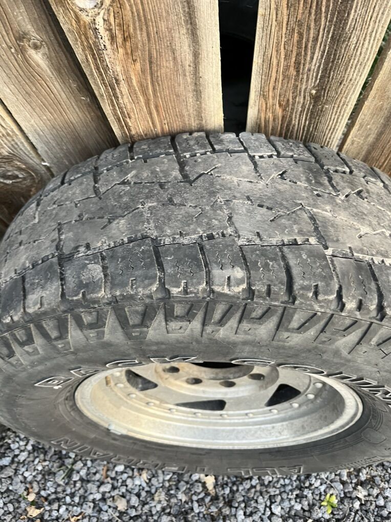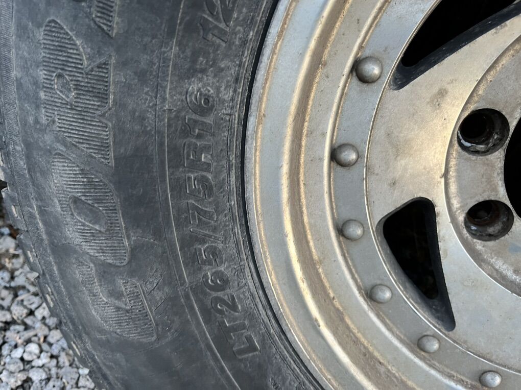 8x16 lug pattern there pretty bald will need some new tires and a little bit of chrome polish on them. Lt265/75r16 $500 obo