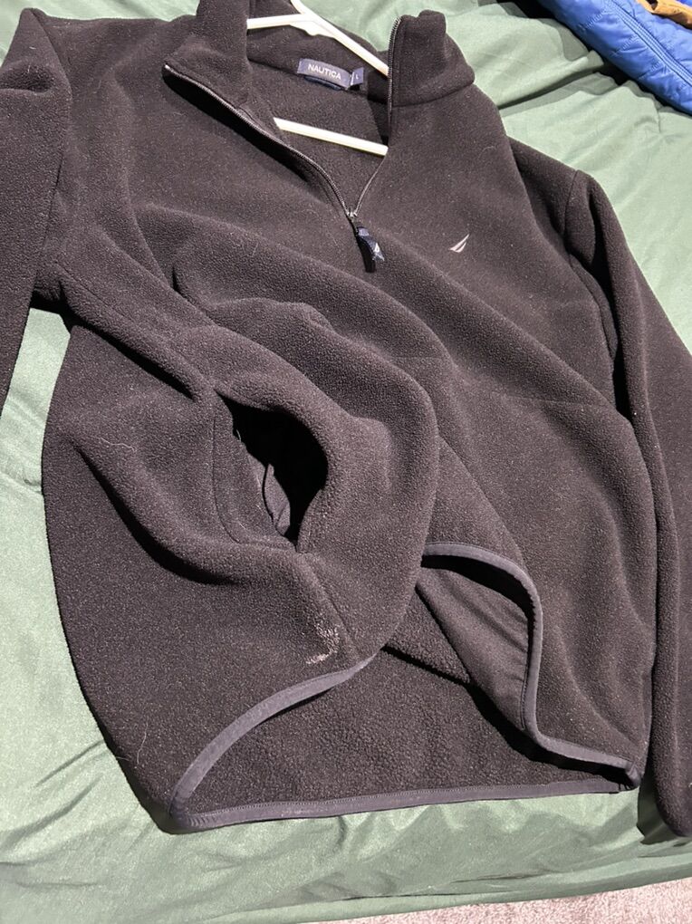VenmoNautica fleece with pouch for hands. Would be great for layering in the cold weather. Does have a small blemish. Check out all my listings. Click on sellers information to do so.