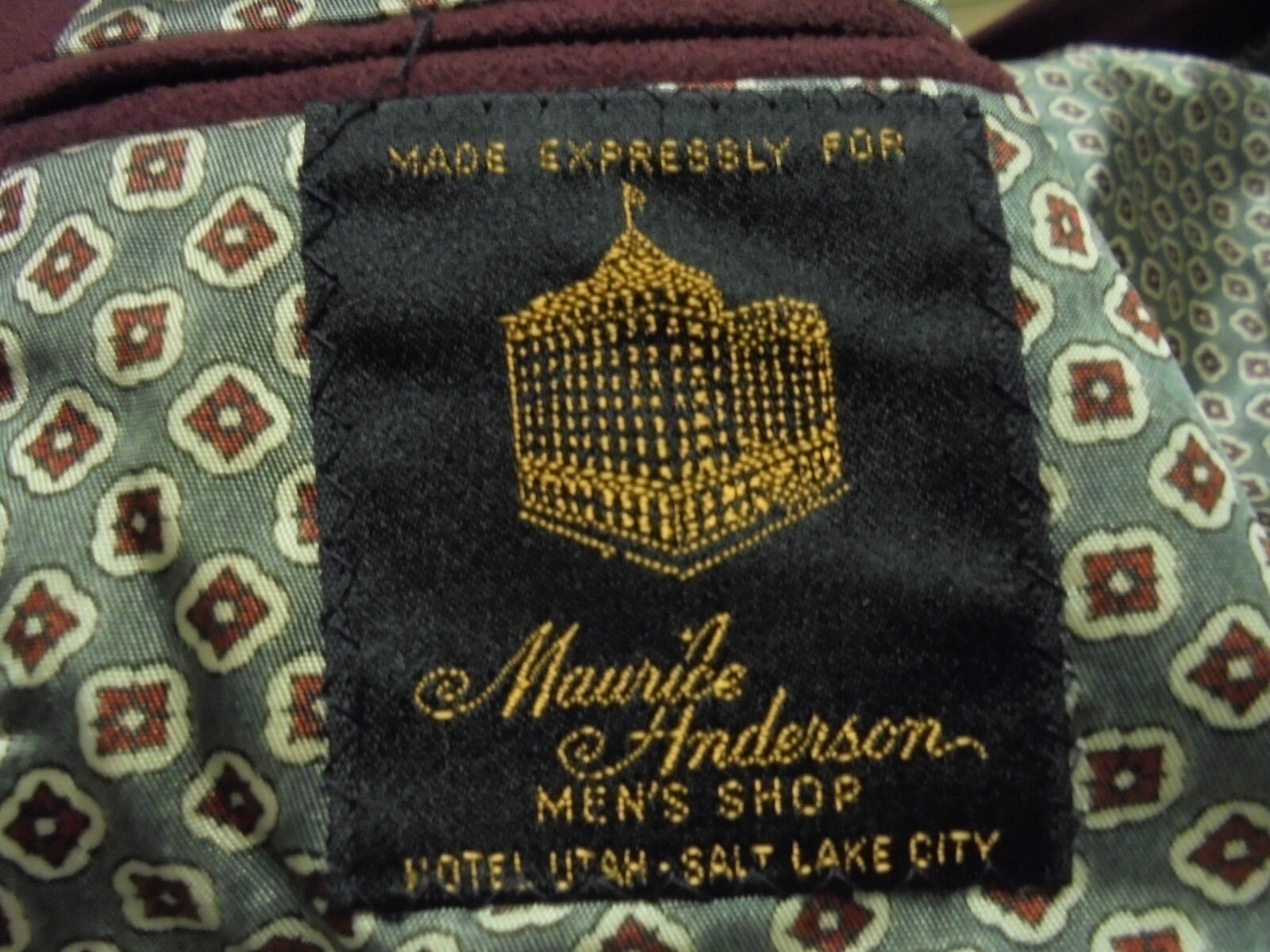 Tag below inside pocket opening shows: "Made Expressly for Maurice Henderson Mens Shop-Salt Lake City"