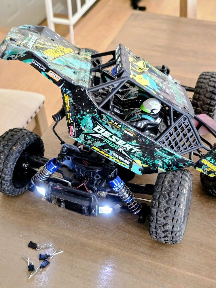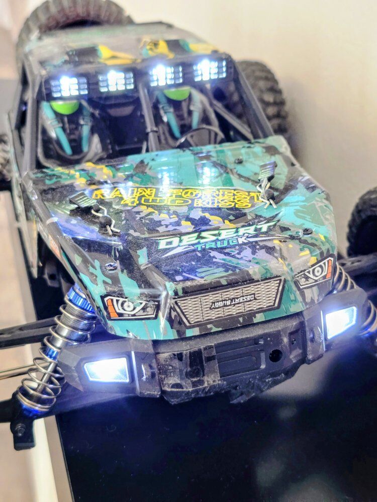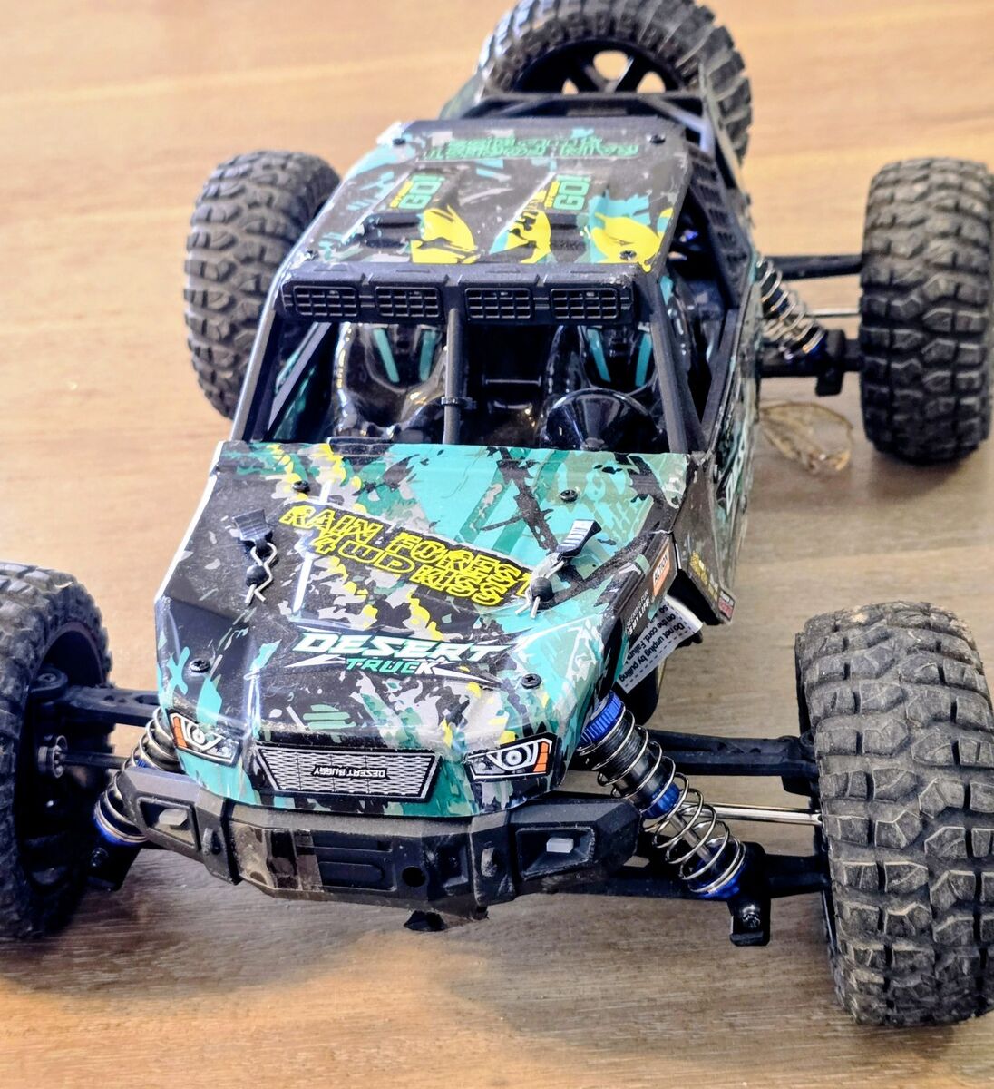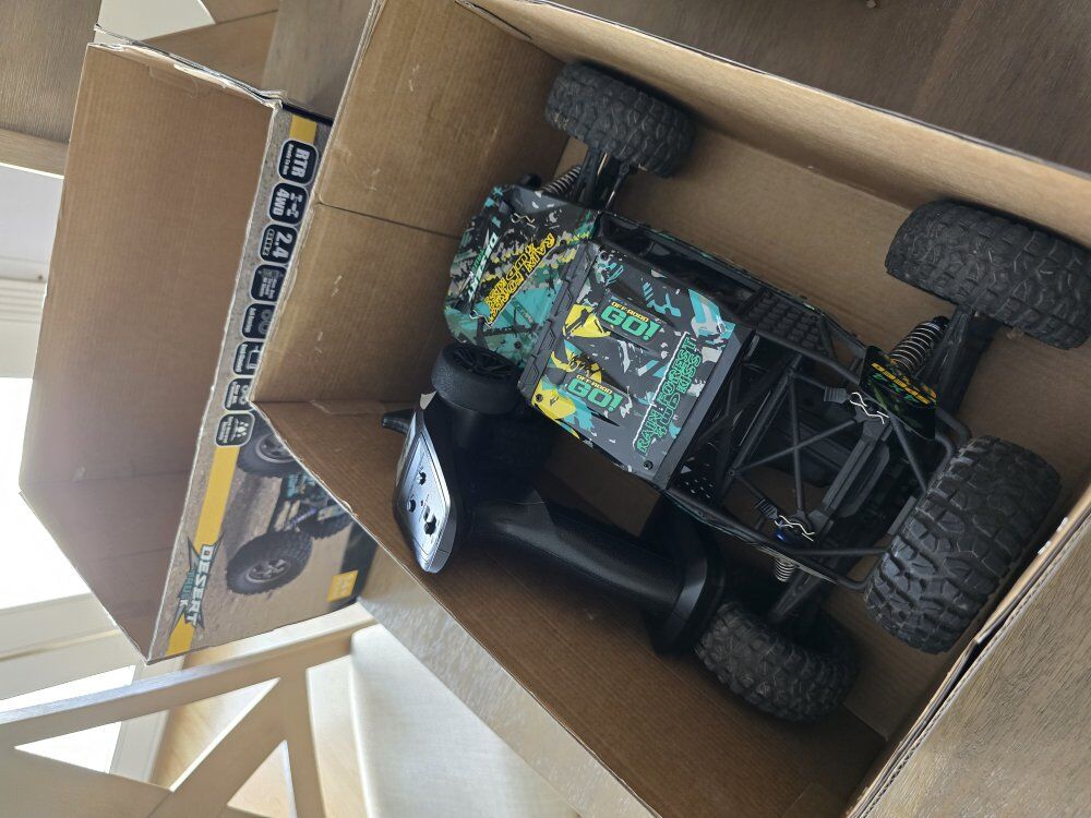 I am selling my kids used RC desert truck. this is a USED 1/12th scale size. comes with 2 rechargeable 7V batteries and wall charging cable. this is one hell of a fast truck that can be adjusted to normal to super fast speed. the truck is sturdy and can withstand flips, turns, and ragged terrain. everything works with this truck, there are no dents, cracks or electrical issues, only minimal wear and tear. but it works like new. the truck will cost you almost $150 at Amazon. im letting it go for $100 bucks. but will consider $90 if you come to my area I don't have to go to you.