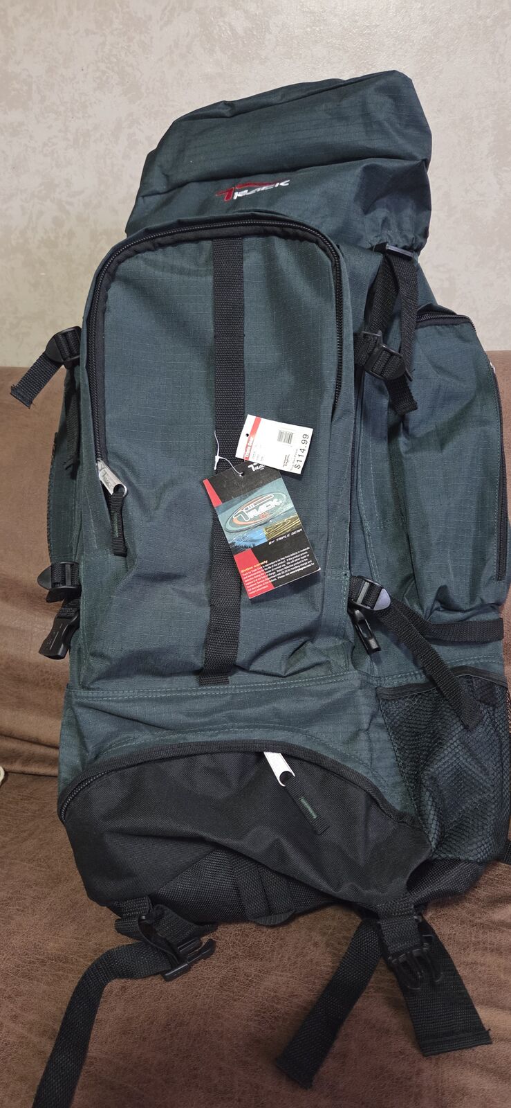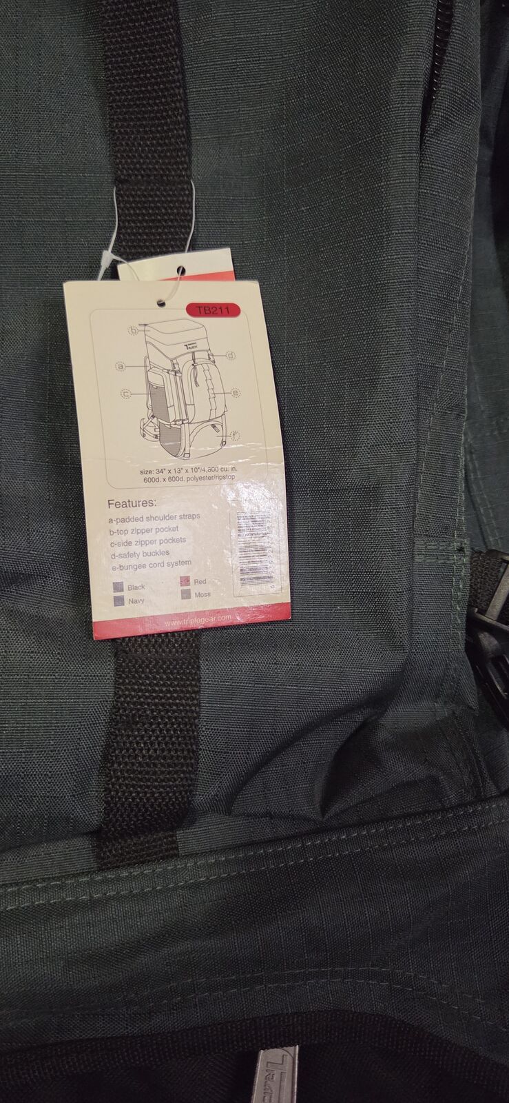 Small, grey backpack $25.00. Large, green backpack $50.00.