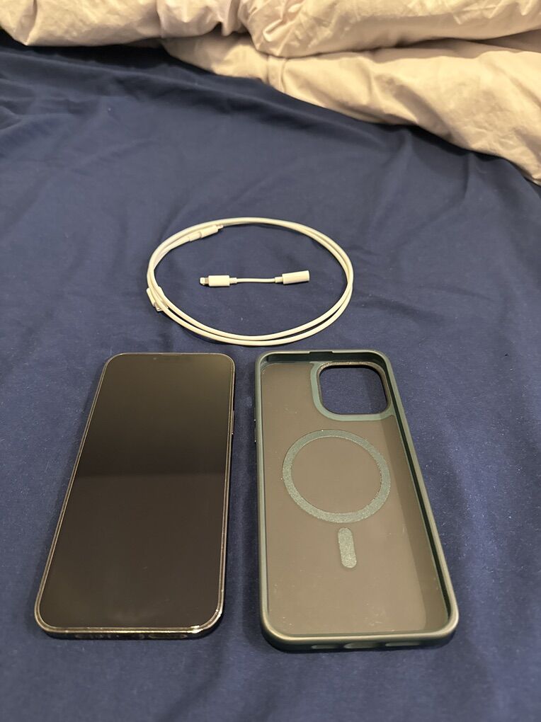 Comes with charging cable, headphone adaptor, case, and extra screen protector. Perfect condition.