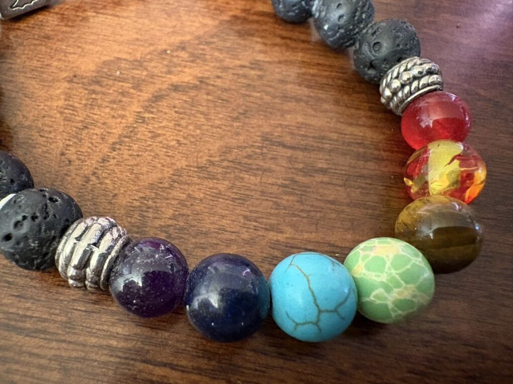 I have a 7 chakra lava stone healing bracelet with a silver tree of life. It slides to adjust the size. See my other ads for jewelry, artwork, home decor and more.