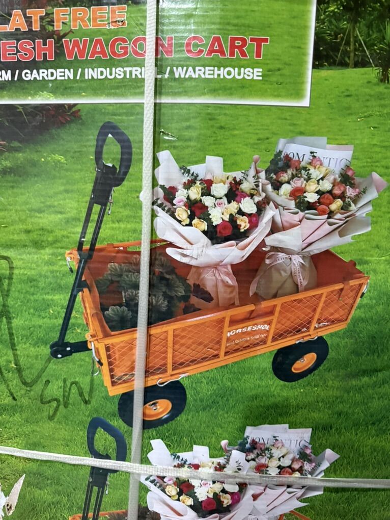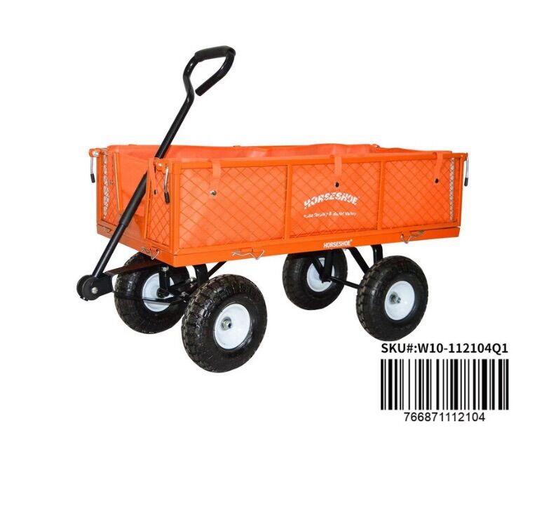 Orange Heavy Duty 828 LBS Capacity Mesh Steel Garden Cart, Garden Wagon with Removable Mesh Sides, Utility Metal Wagon with Convertible 180° Rotating Handle Attach to ATV or Tractor and 10-inch Flat Free wheels [SPECIFICATION]: This garden cart offers 828 LBS and 4 CUB.F. capacity. It features a reliable bed with dimensions of 38 x 20.86 inches, has overall dimensions of (L x W x H): 40.94 x 20.27 x 21.55 inches, and weighs 46 pounds.