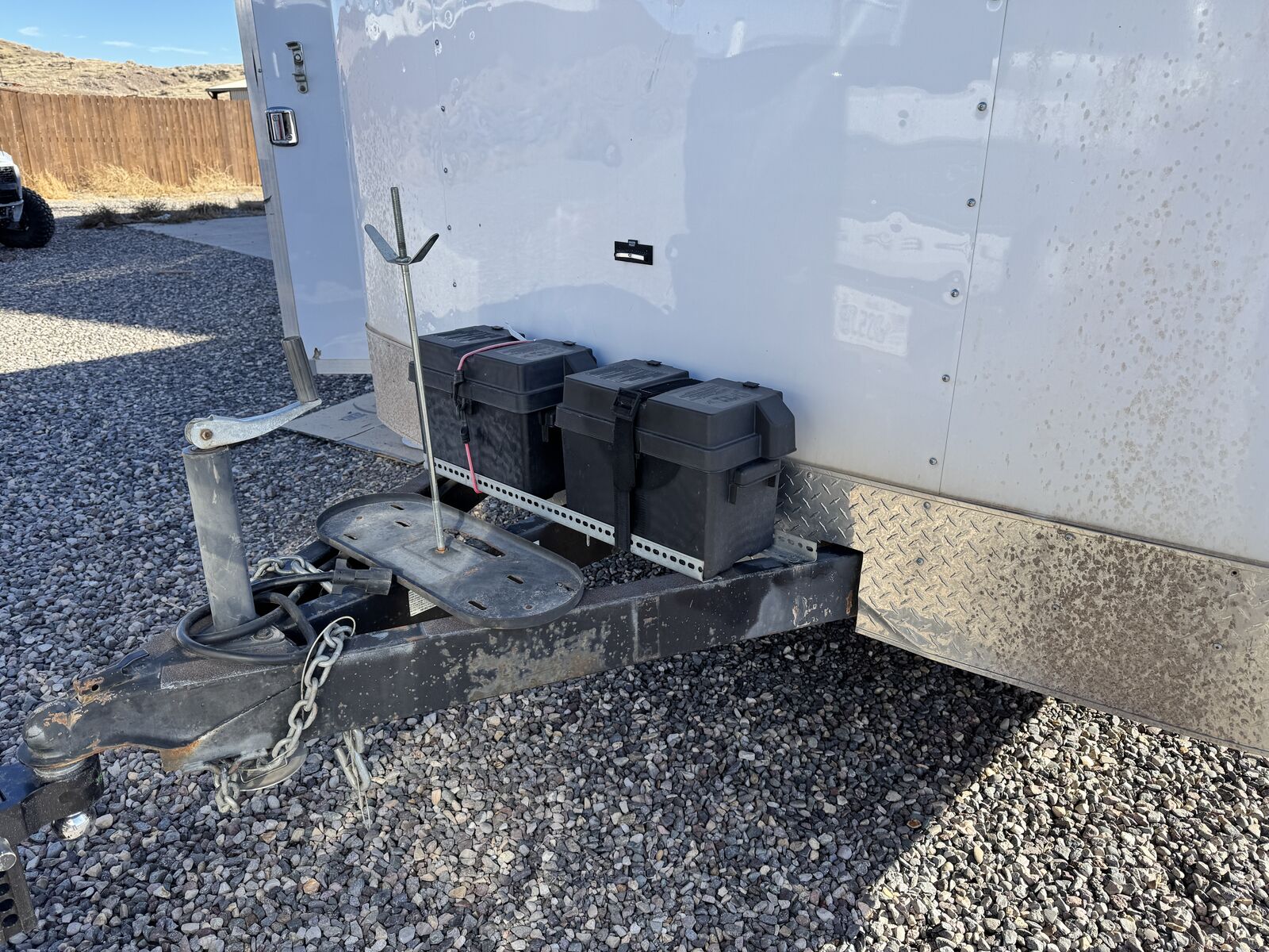 Exterior: · Propane tank mount installed on the tongue · Battery boxes mounted on the tongue · Battery wiring run into the trailer for easy power setup · Clean, solid structure and ready to tow