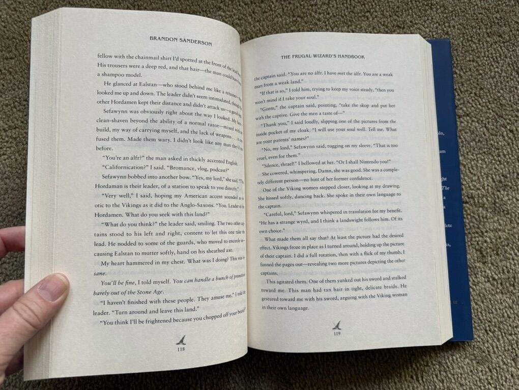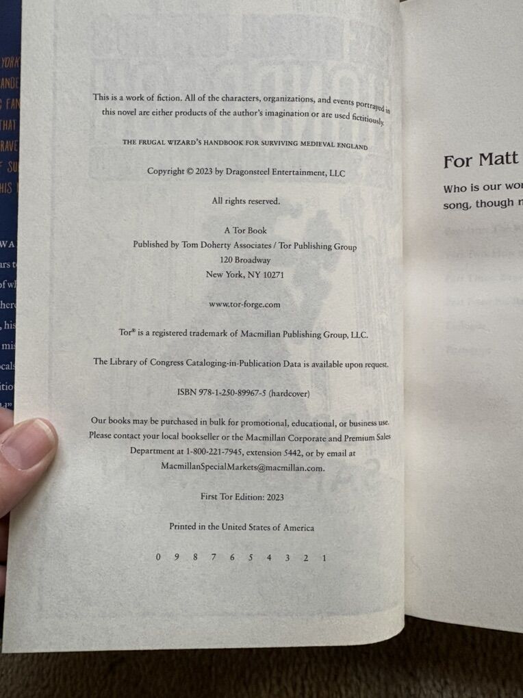 The Frugal Wizard's Handbook for Surviving Medieval England, by Brandon Sanderson, illustrations by Steve Argyle. Tor, 2023, 364 pages. First edition hardcover in excellent condition, including dust jacket. Text only. Cash or Venmo.