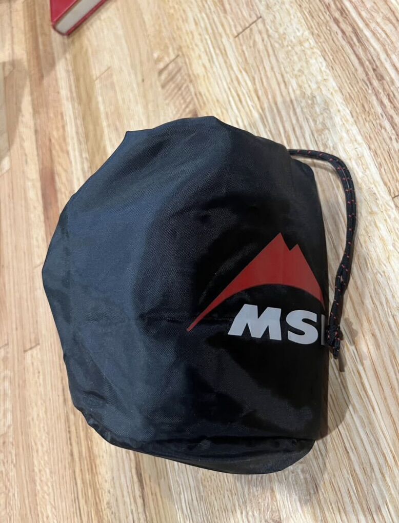 Comes with fuel pump, windscreen, heat reflector, instructions, tool kit, and stuff sack.