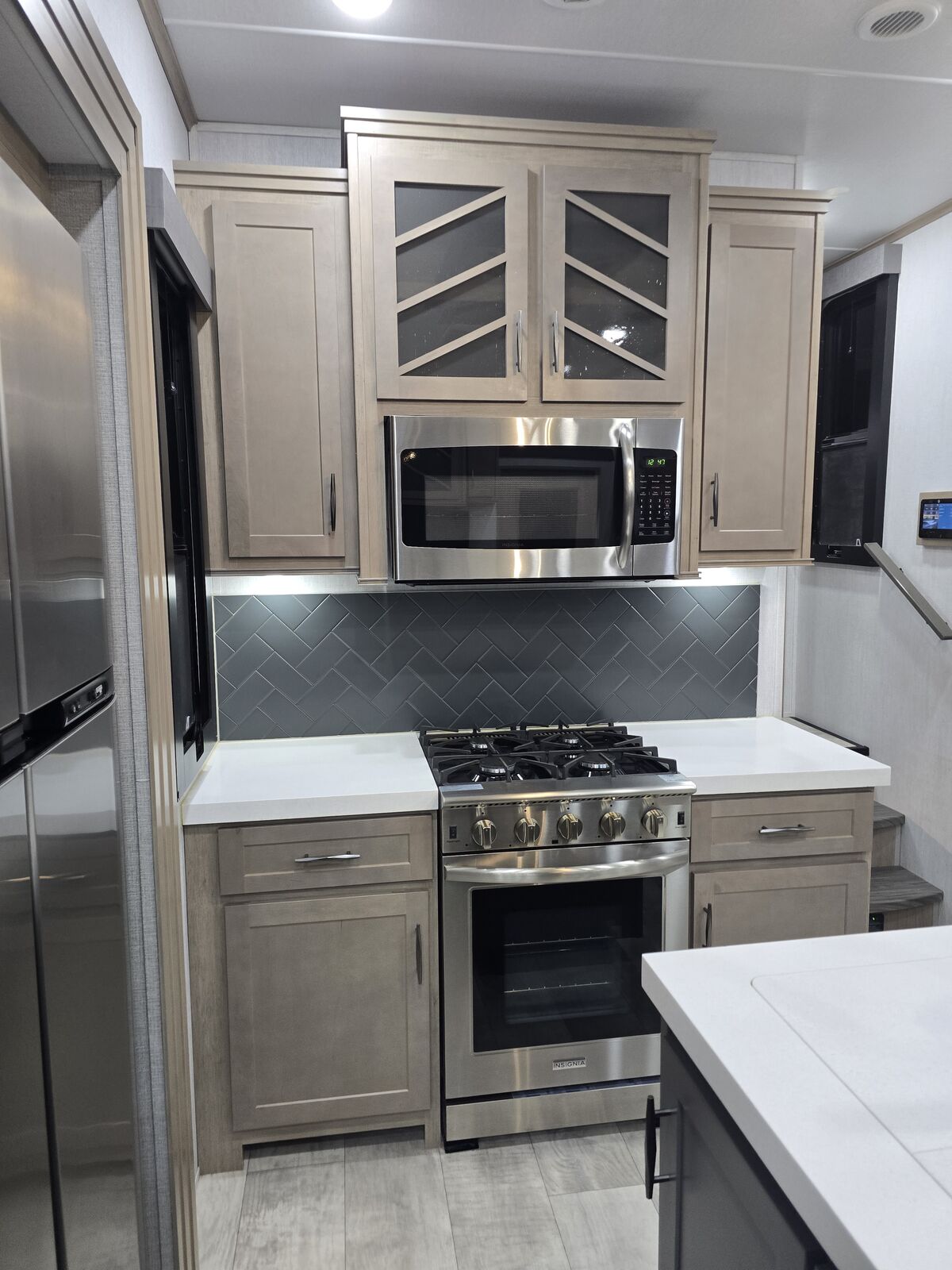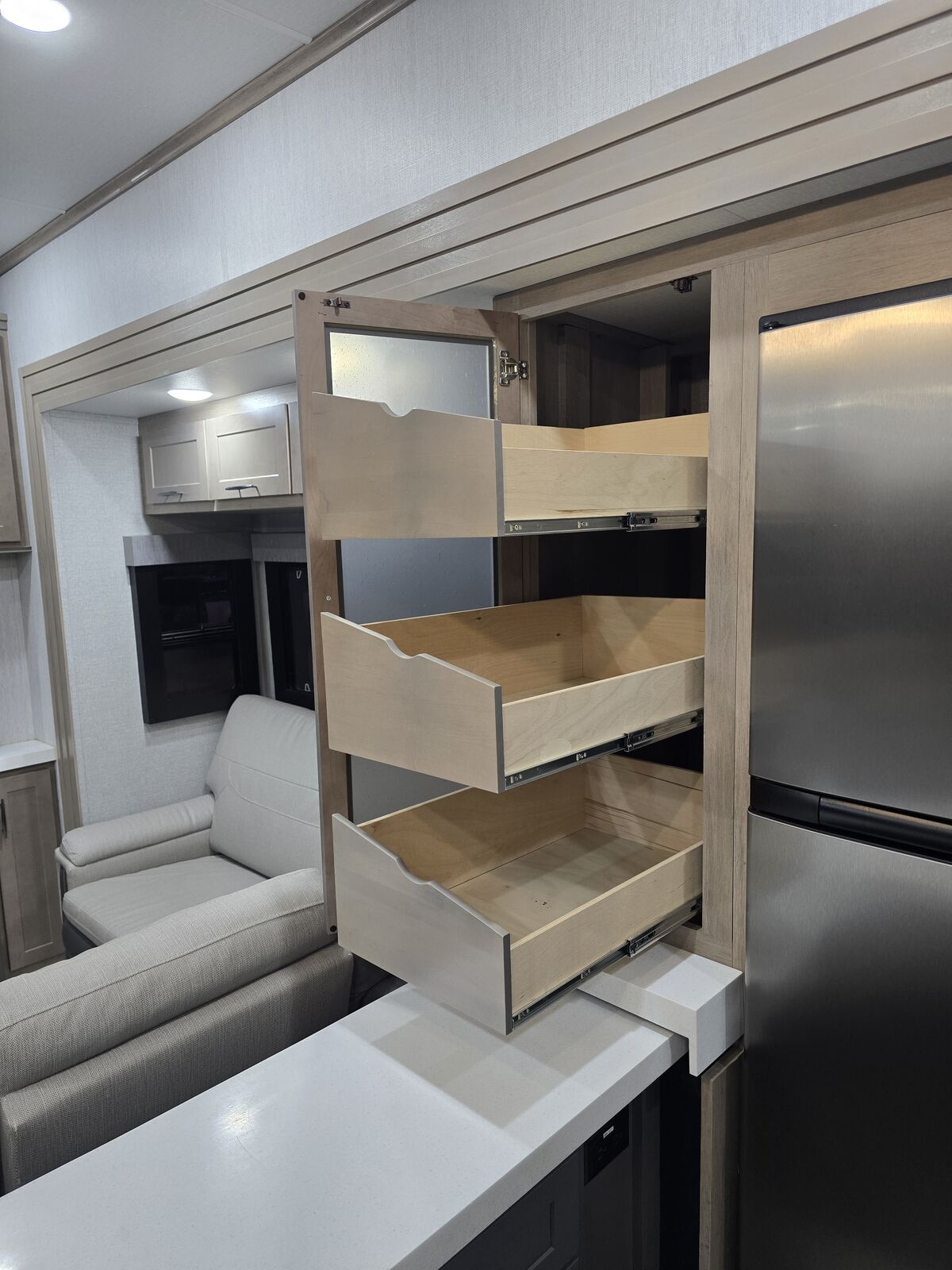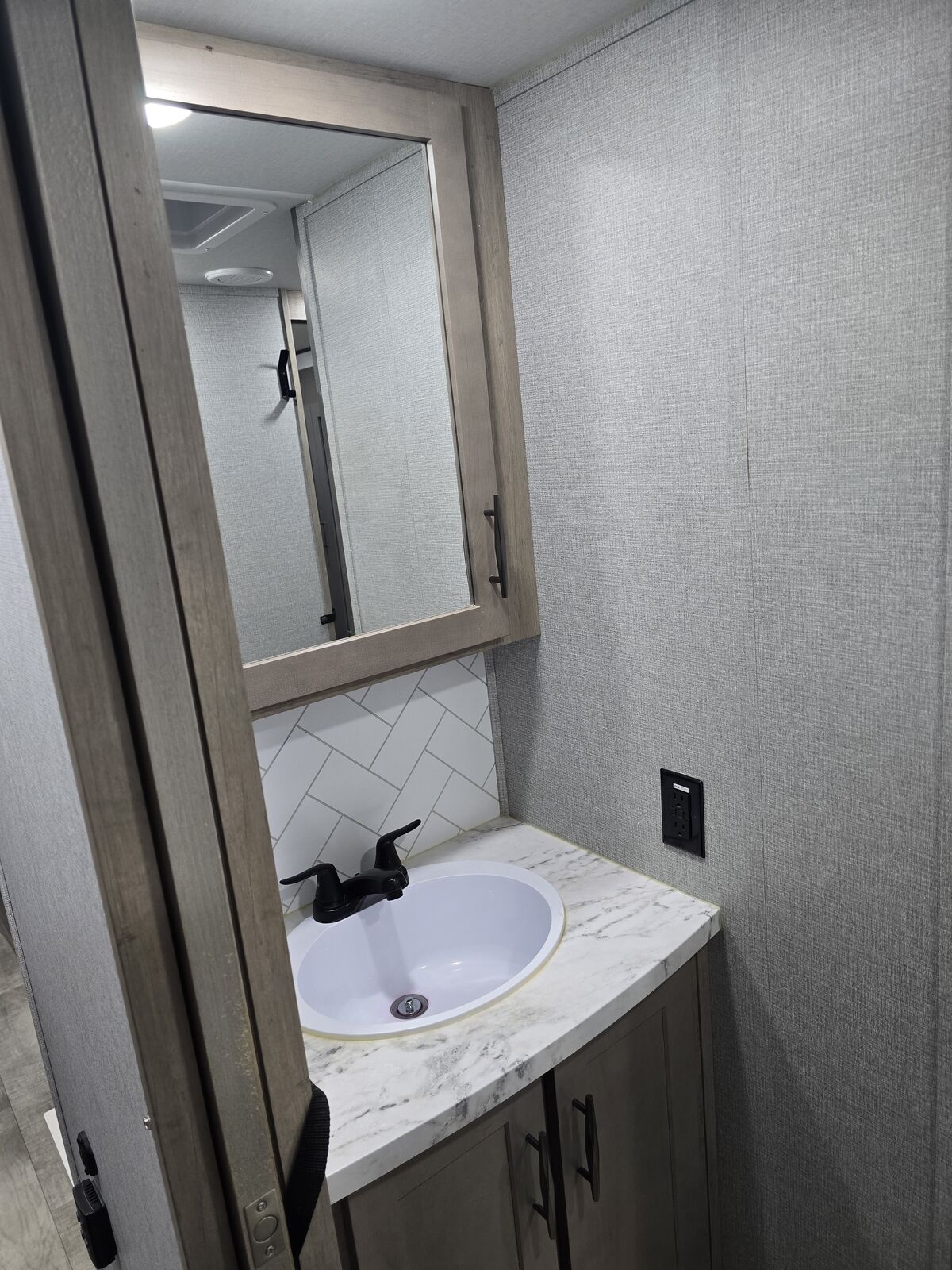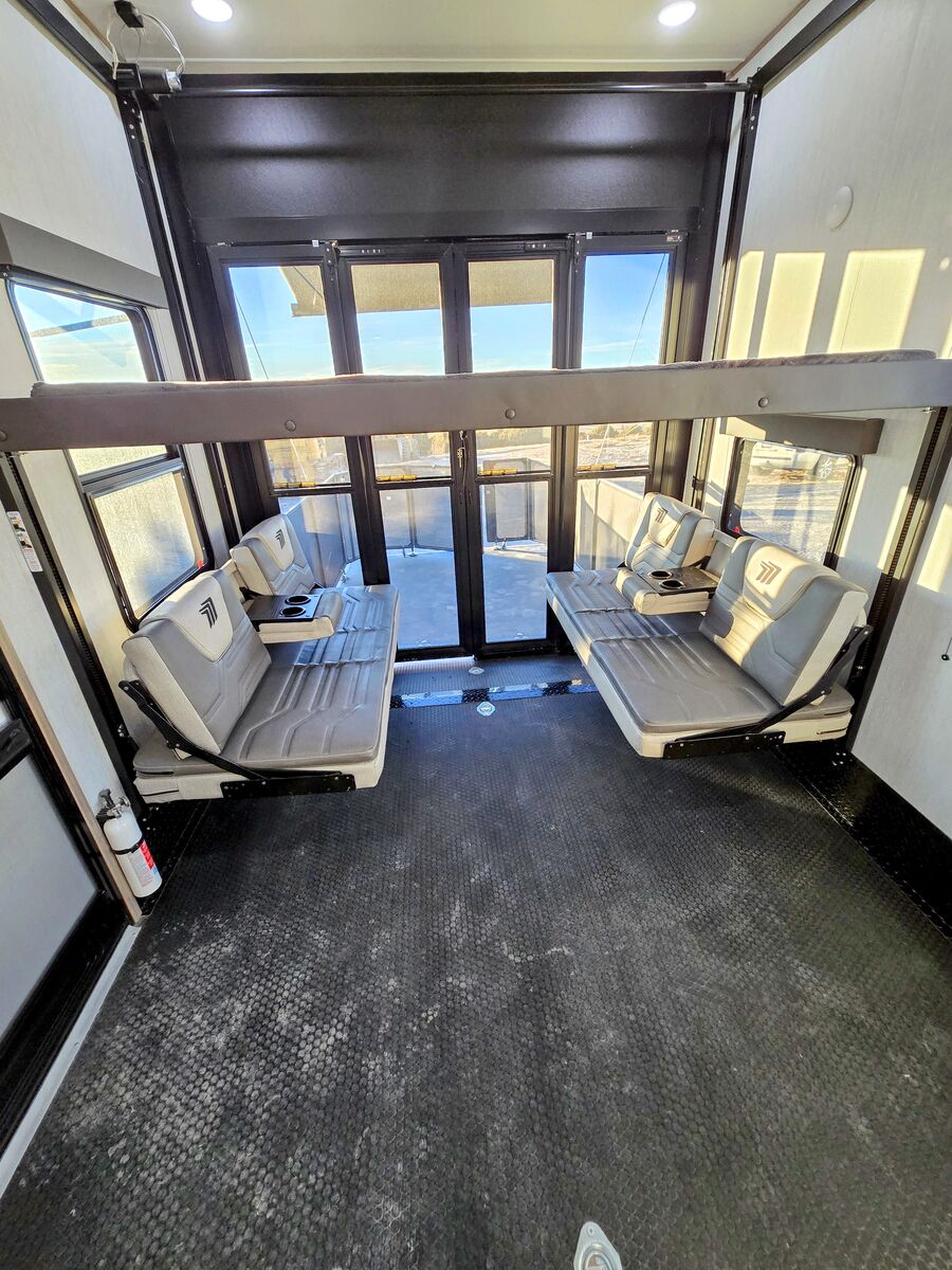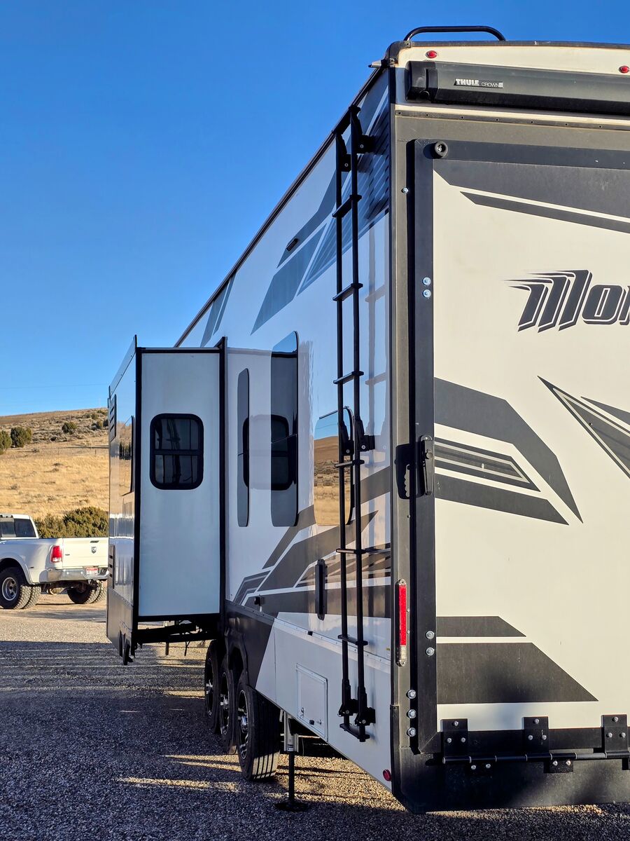 Great toyhauler with a comfortable living layout. 14' garage, 3 Ac units,solar, 1/2 bath, central vac, glass patio doors, and most things can be controlled from your phone. We have pulled it less than 1200 miles and have had two dirtbikes in the garage once.