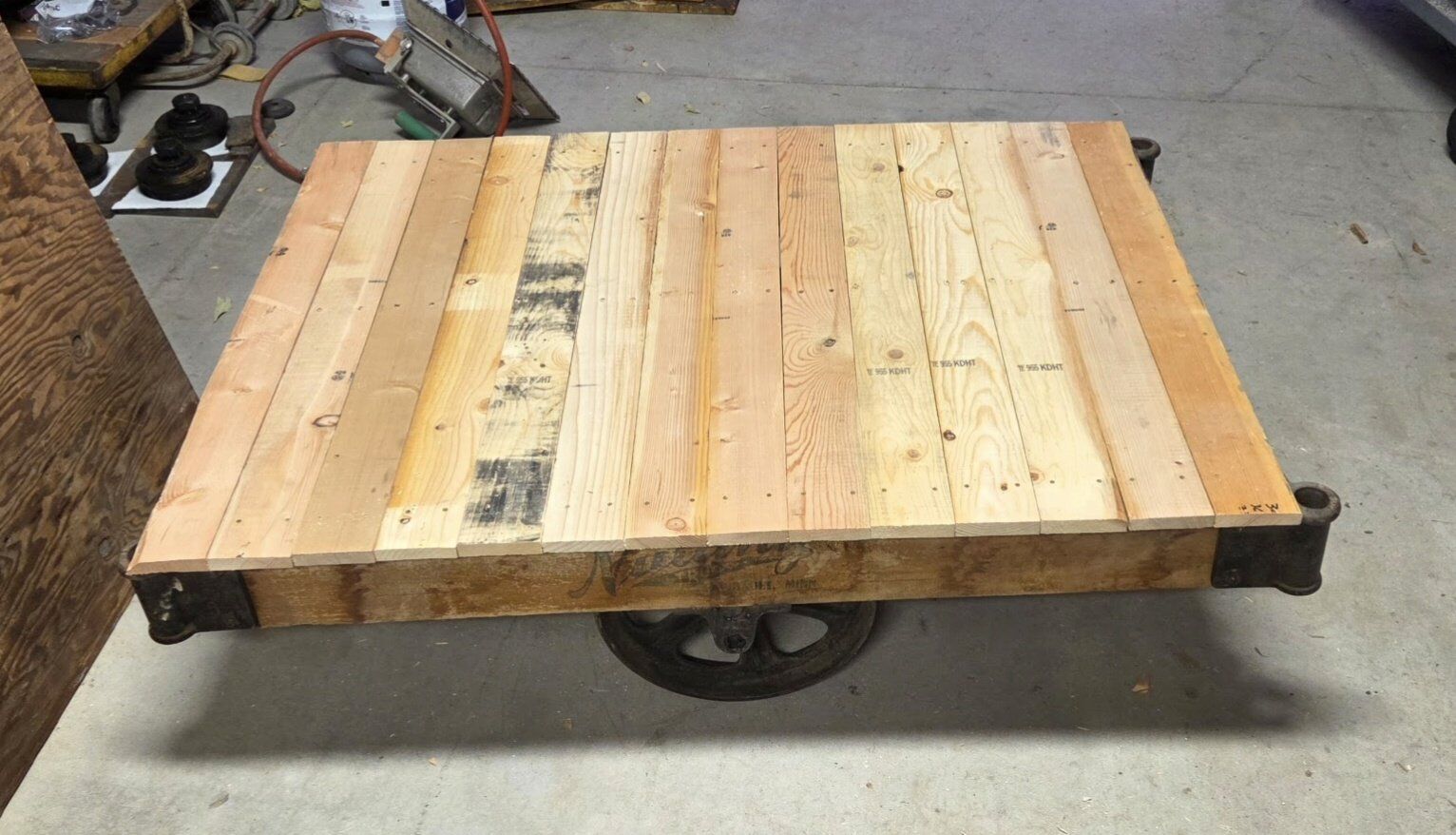 VenmoVintage Nutting wood and cast iron industrial, railroad cart. It would be great for use as a cart, coffee table or display piece. Sold as is, see pictures for condition. Its approximately 33" wide by 48" long. Located in American Fork, Utah.