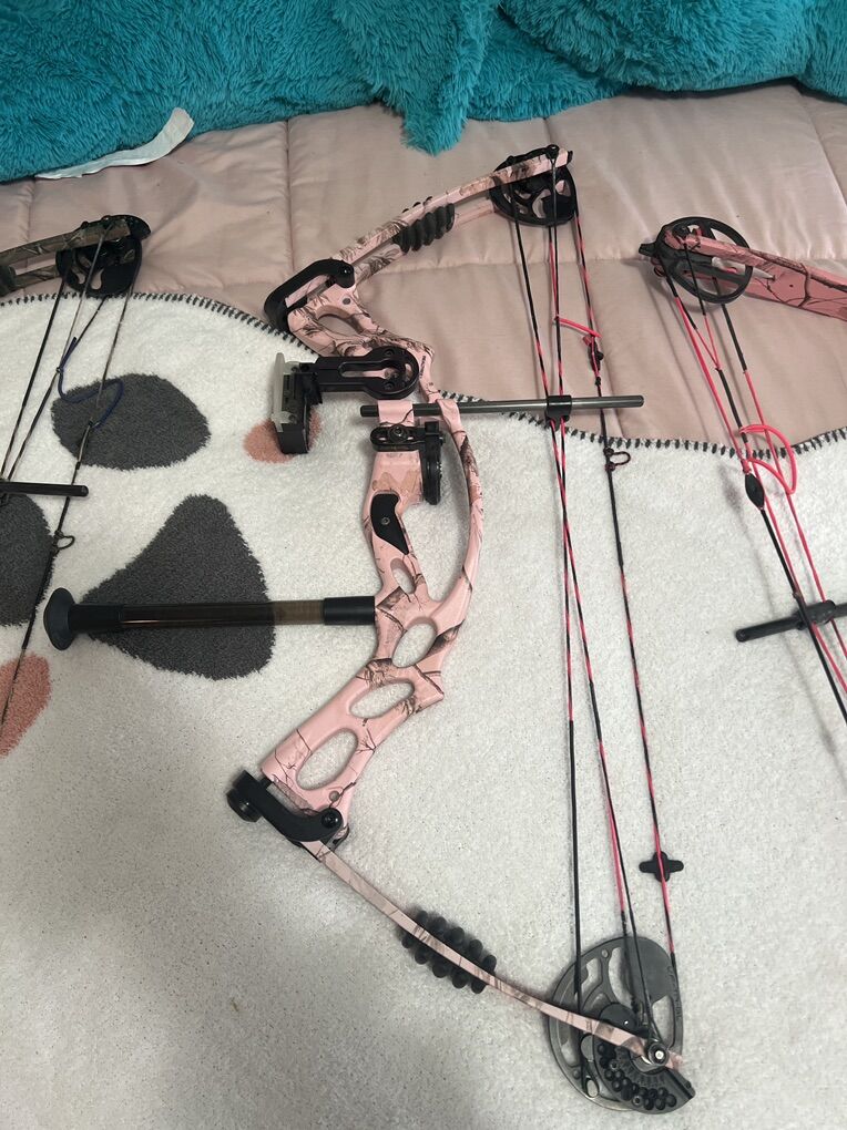 Venmo3 kids archery bows. The light pink and regular camo 300, the dark pink 150. All three are in really good condition for how old they are. Me and my sibling are selling sold for the purpose we re to big for them. Hoping these will help with some medical debt. Willing to do some negotiation. I believe all three are left handed