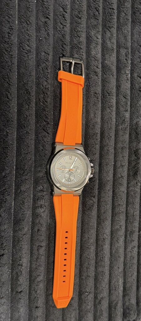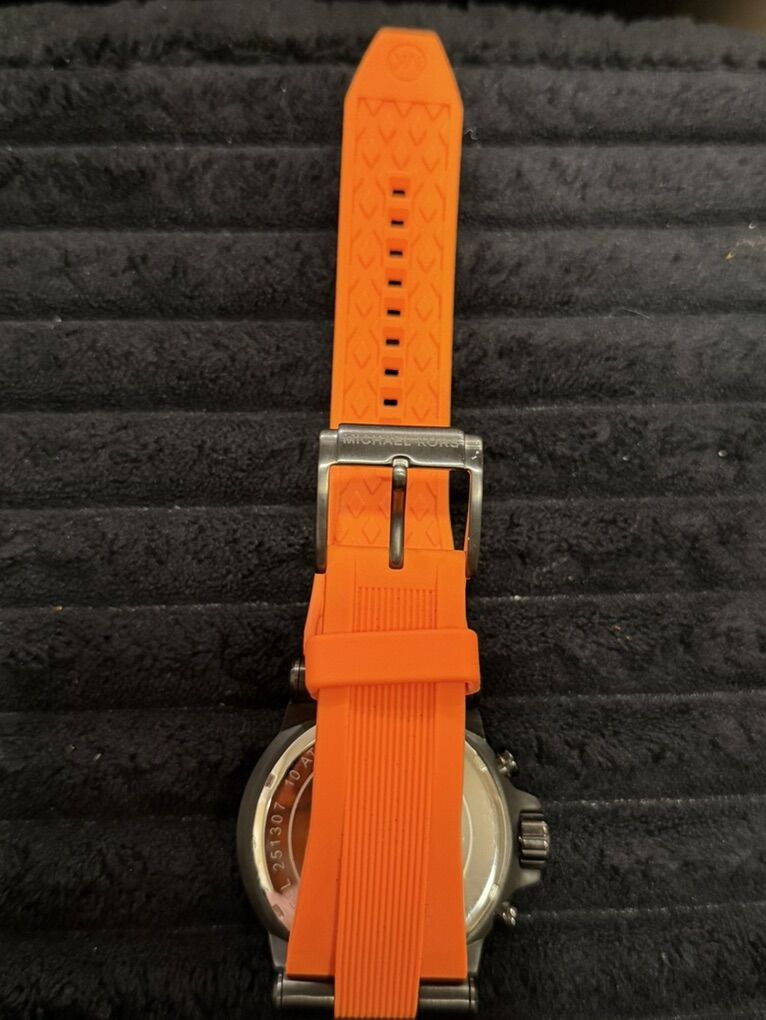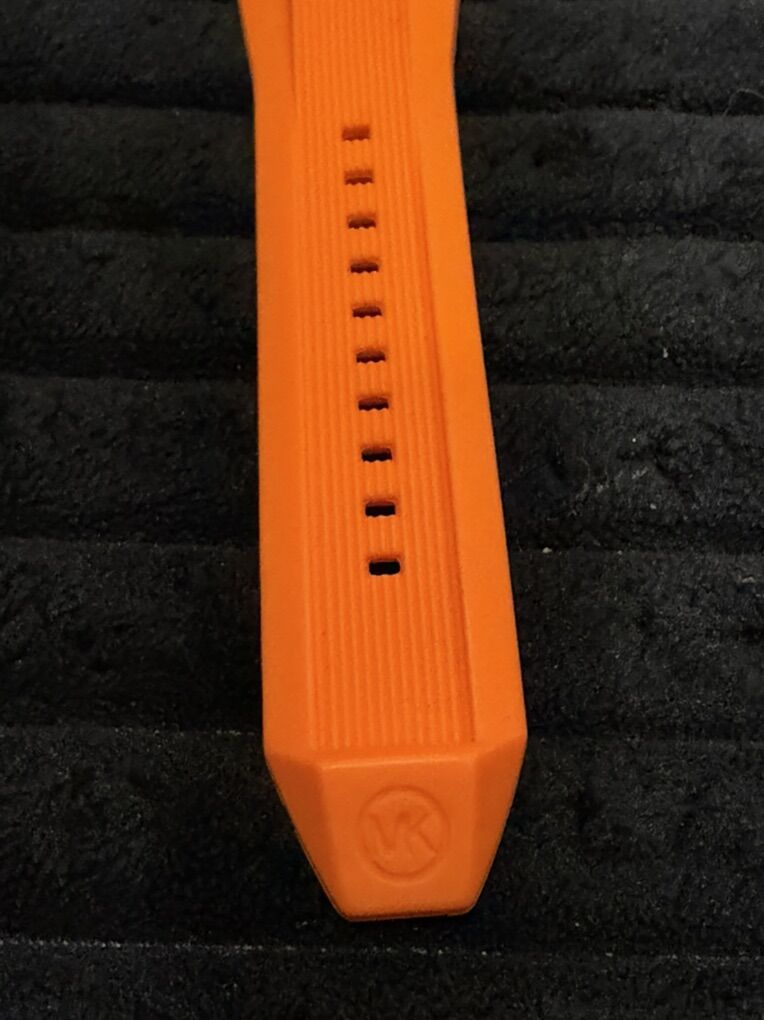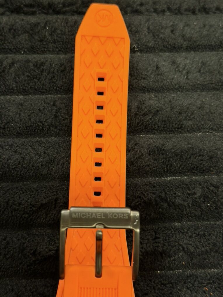 Orange Rubber Strap with Grey PVD Plated Stainless Steel Pin Buckle.