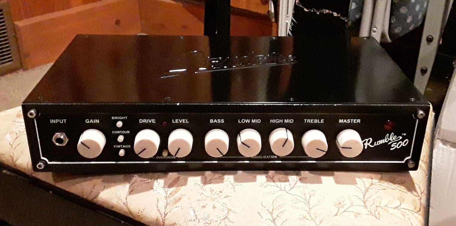 Fender Rumble 500 Head in good condition. Working perfectly. Has a 4 band equalizer along with dial-in overdrive to give just the amount of distortion sound you like. Also has three push buttons to alter the sound even more with a bright switch, contour and vintage settings. Also has effects in/ out loop sockets on the back and an xlr line out socket to plug directly into a main board.