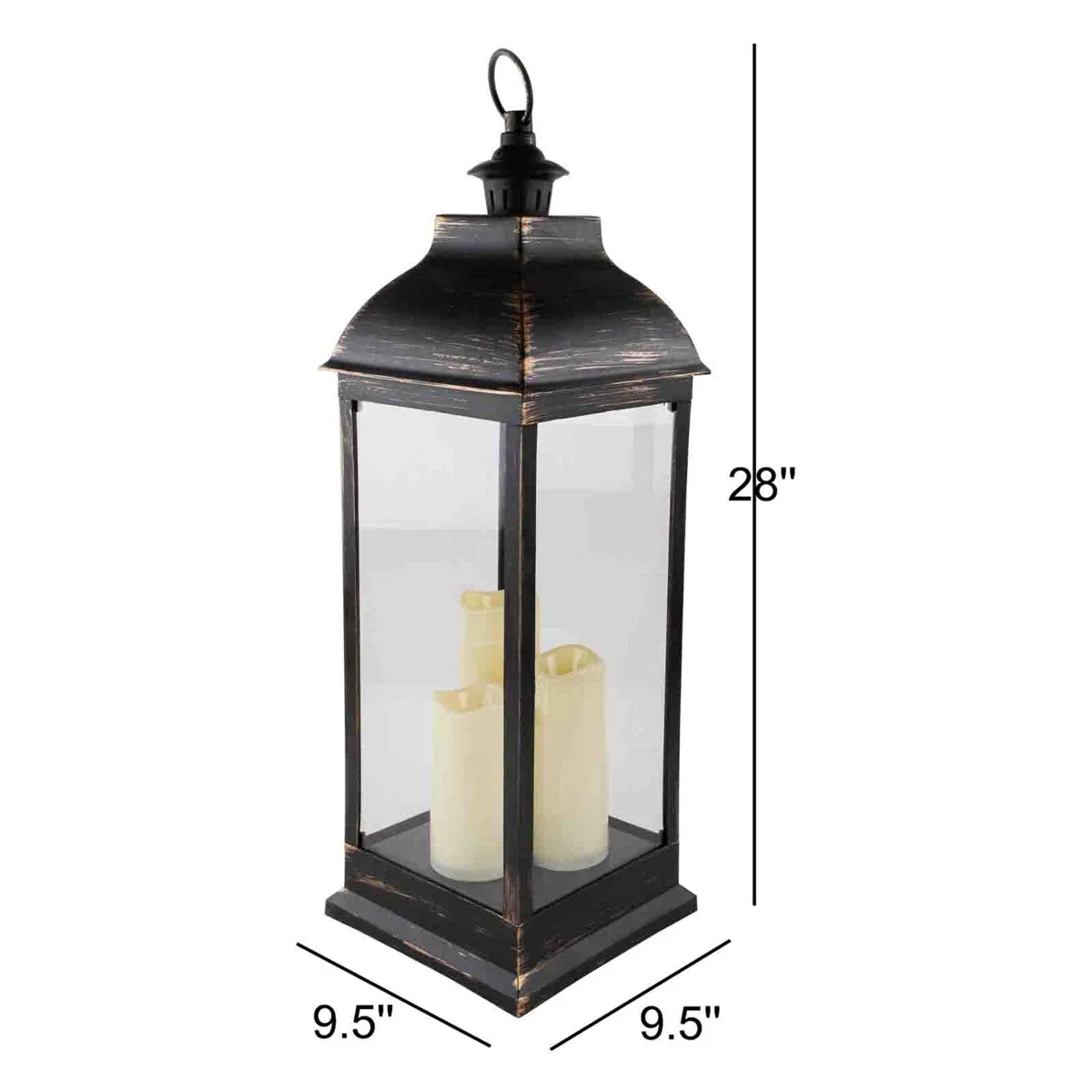 CashApp28" Gold Brushed Black Lantern with Flameless LED Candles