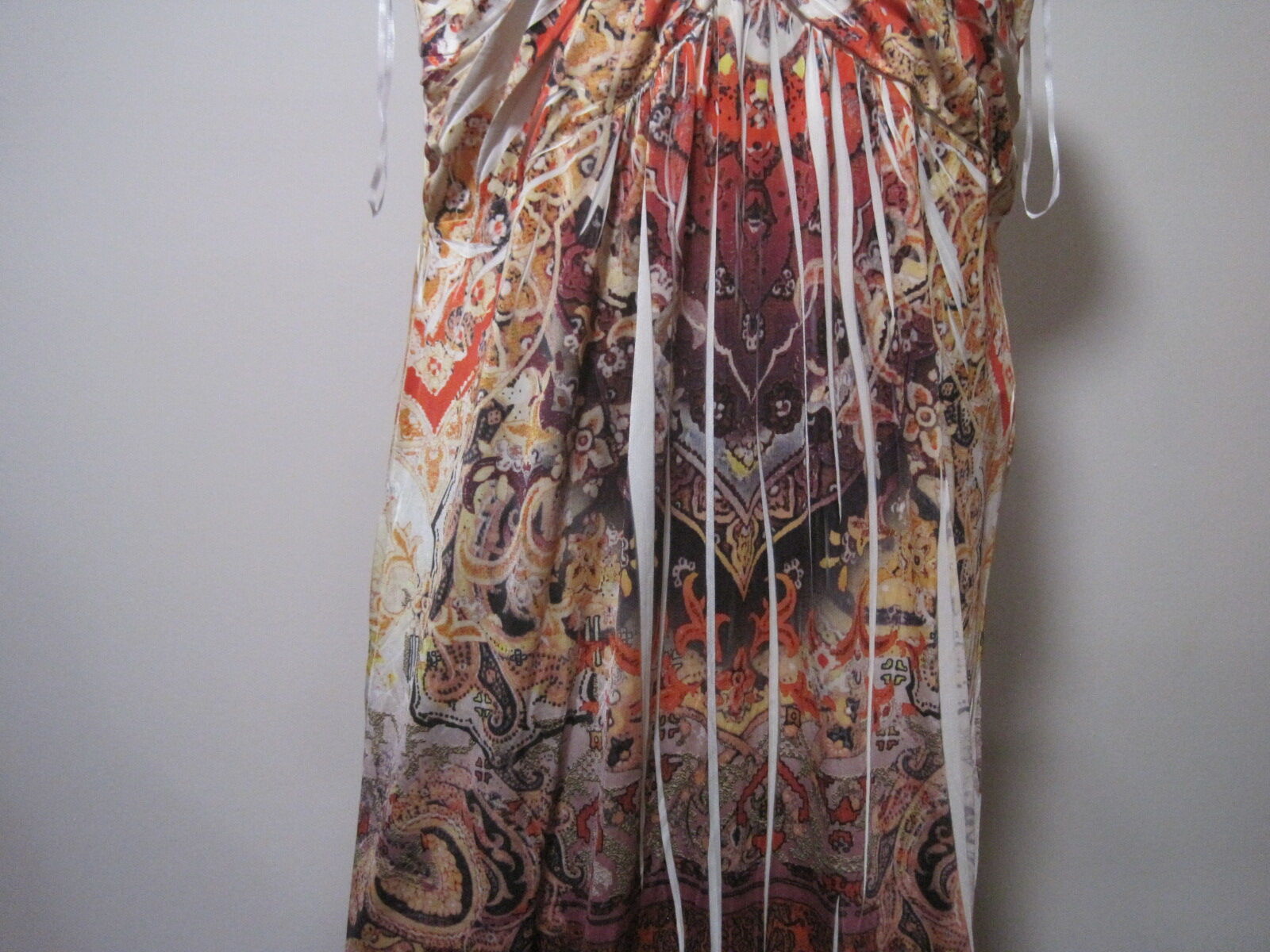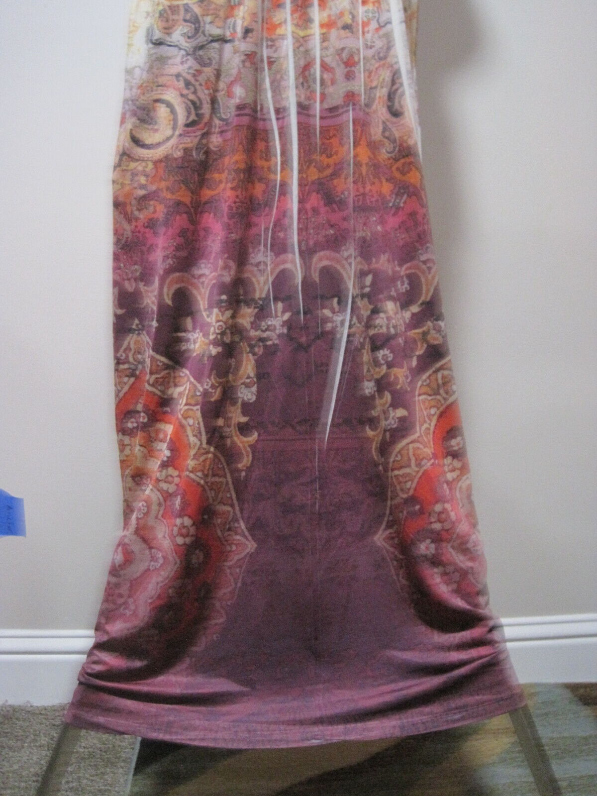 The Apt.9 Women's Medium Maxi Dress is a stylish and versatile option for a party or cocktail event. This sleeveless dress features a flattering V-neckline and a colorful paisley print, perfect for a summer occasion. Made from a stretchy jersey fabric, it is comfortable and easy to wear. The dress is accented with rhinestones for a touch of glam, and it is machine washable for convenient care. The long dress length and maxi style make it a statement piece in any wardrobe.