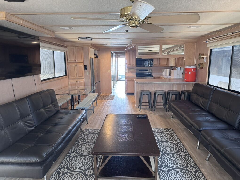 2023 Upgrades New Solar Panels (24) New 20-Year Lithium-Ion Batteries (5) New Leather Couches (3) Fold out into three double beds New Large Refrigerators/Freezers (2) New Air Conditioning Units (3) New Ice Maker New Electric Stove and Stove Top New Microwave New Interior Vinyl Flooring New Upper-Deck Metal Roof New LED Lights Throughout