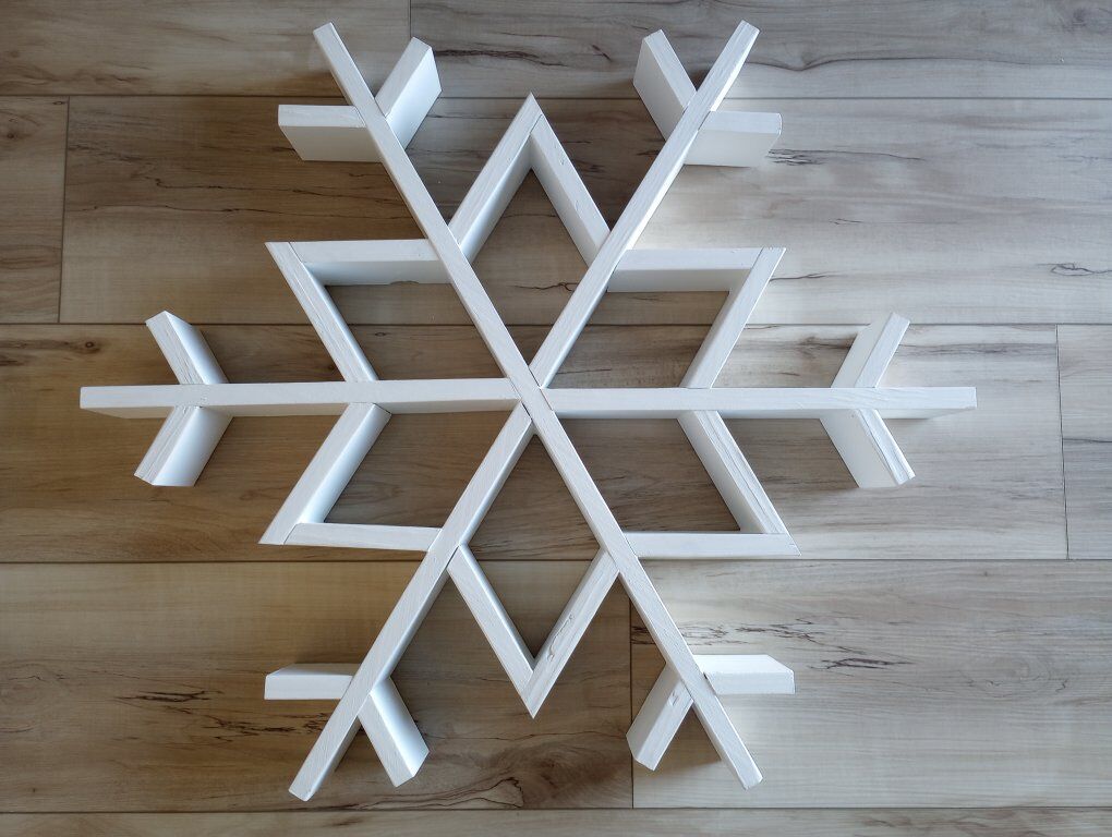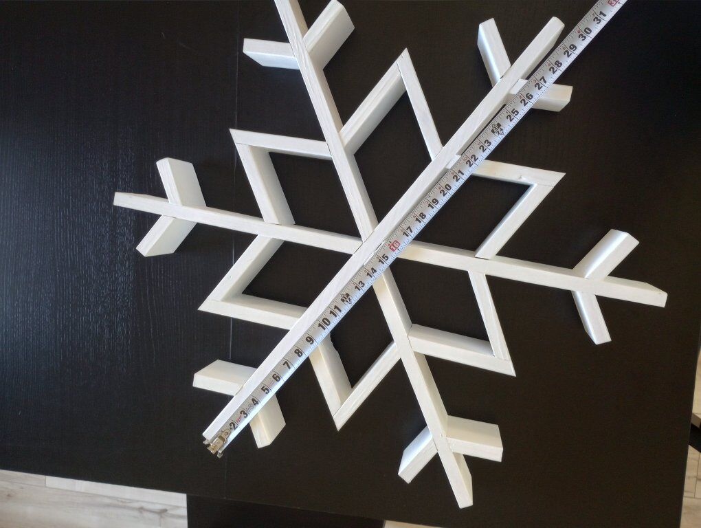 PayPalHandmade wooden snowflake. About 30" diameter. Painted with Sherwin Williams Pure White. Made out of sanded 1x4 pine boards.