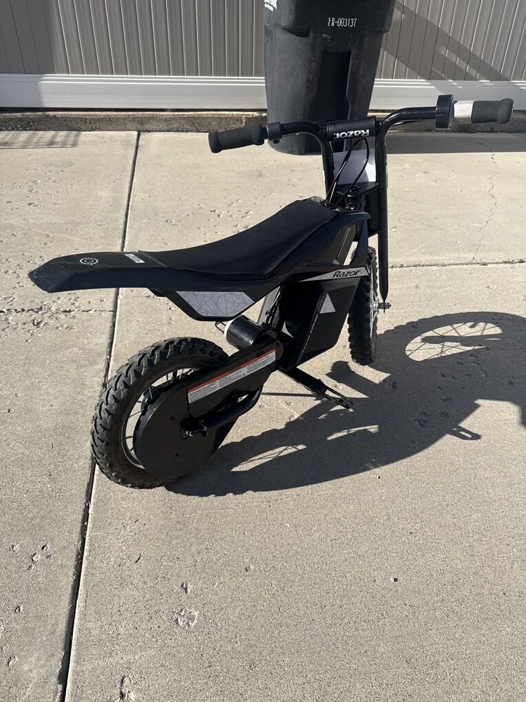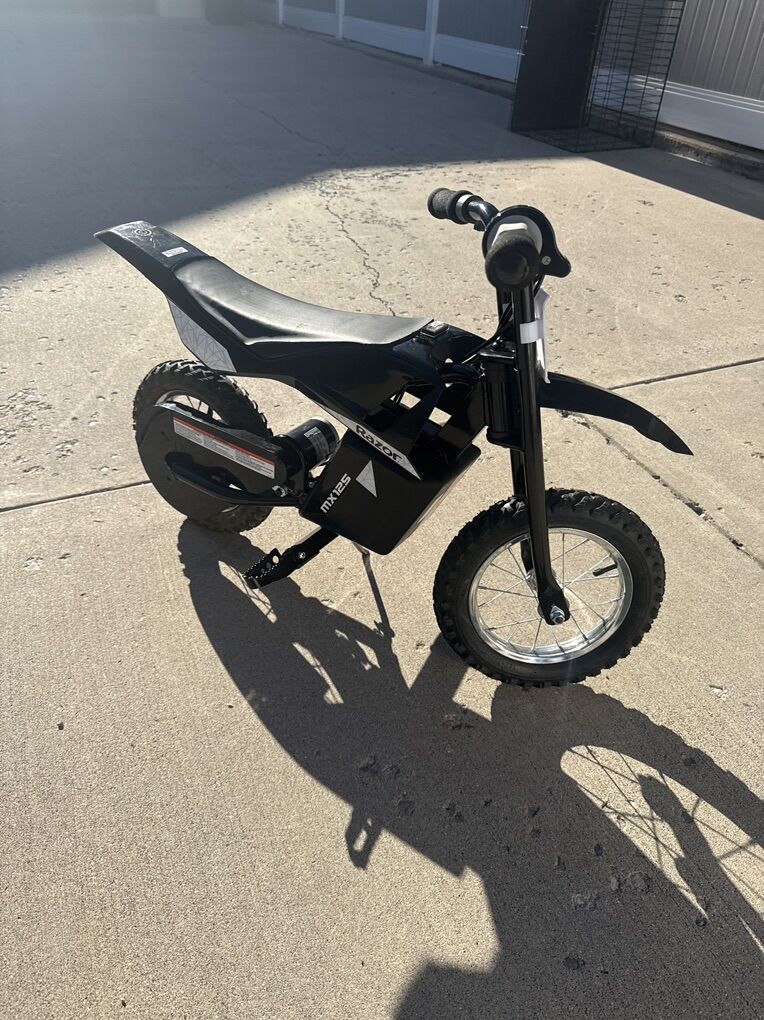 VenmoRazor MX 125 electric motorcycle. Great for kids 4 and up. This bike is less than half retail price. It is also in great condition. Has new battery and has charger included.