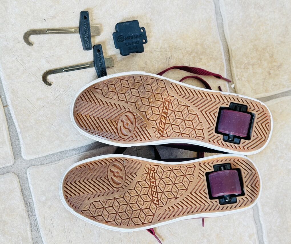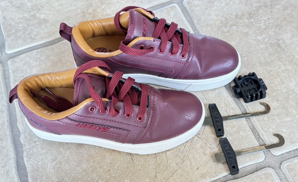 VenmoLIKE NEW- Pre-owned Heelys - The Authentic Wheeled Shoe Youth size 4 On box it says male sizing however Boy's shoe size 4 youth typically converts to a girl's or women's size 5.5, by adding 1.5 to the youth size; Color Burgundy on outside. Windsor Tan on inside. Original Box but not perfect. Cash or Venmo only