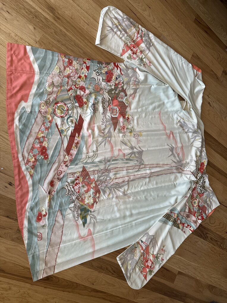 VenmoWomen’s universal size. My mom brought this home for me about 40 years ago from Japan. There are a few small strains but overall it’s hung in my closet and has not been worn. I played dress up with it when I was younger. It is adult size. $20 OBO