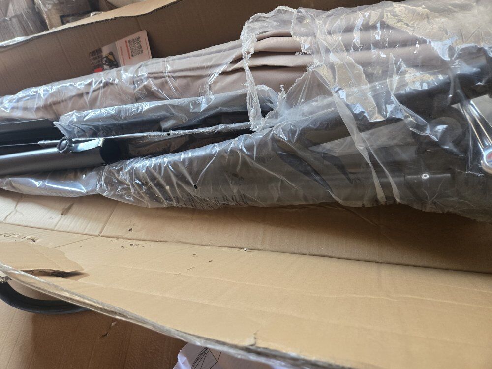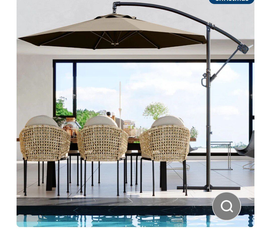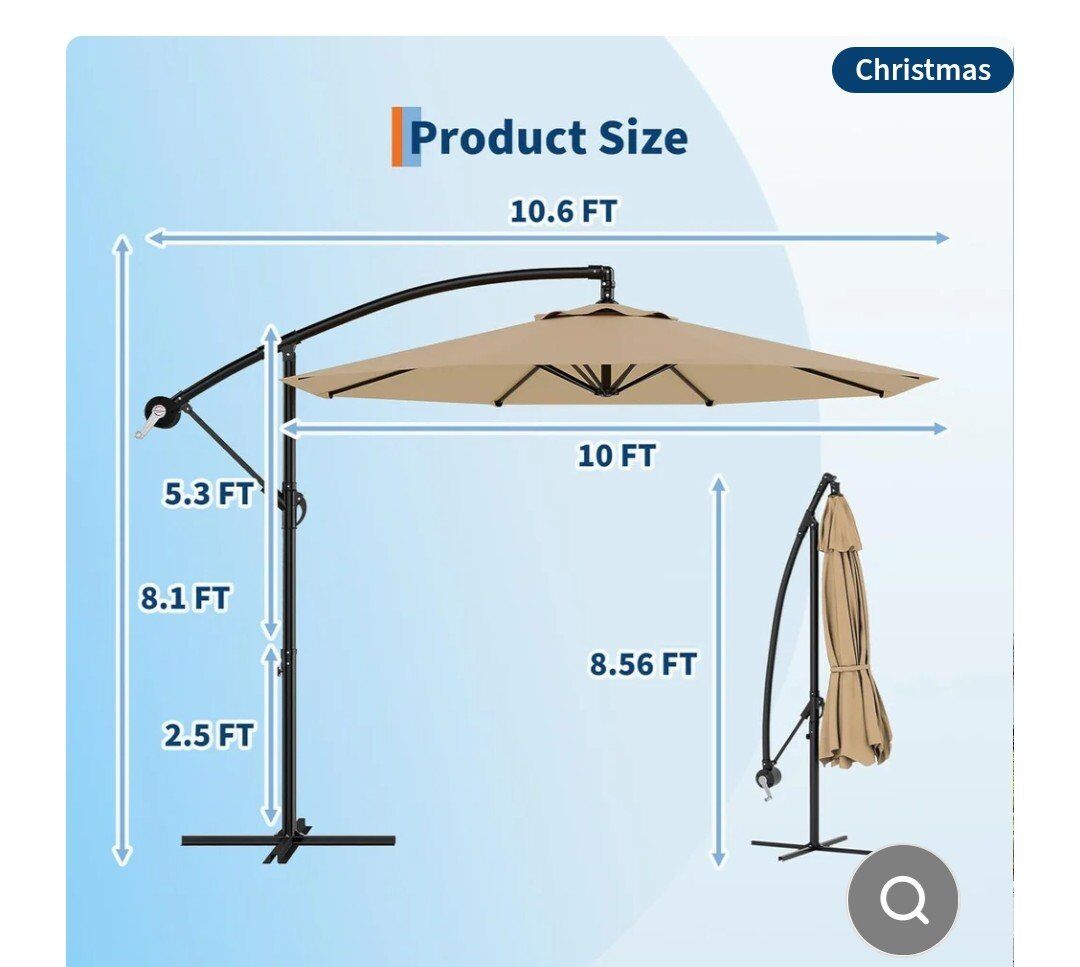 Garvee 10' Offset Patio Umbrella, Cantilever Umbrella with Easy Lift & Tilt Adjustment, 8 Ribs Sun Umbrella UV Protection, Tan Color. New open box