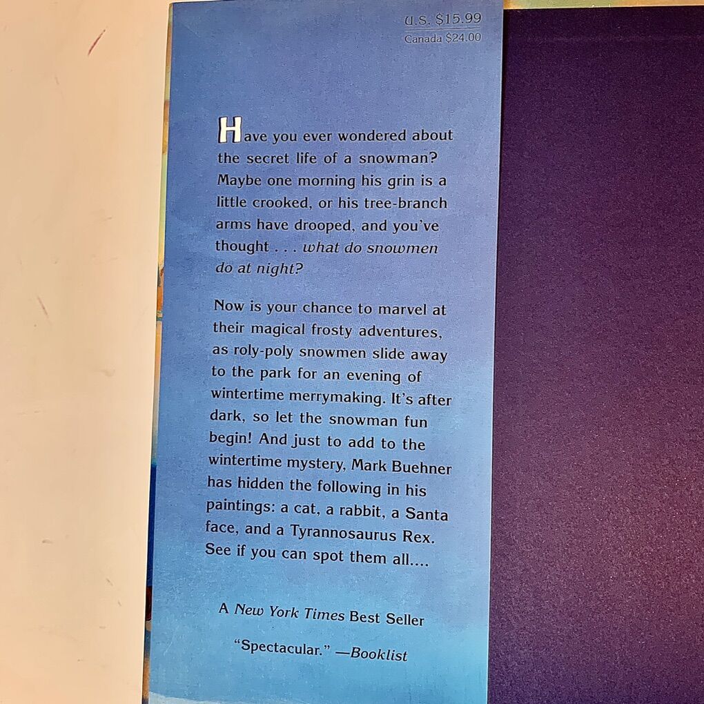 VenmoSnowman at Night is hardcover with dust jacket and Snowmen at Work is softcover. Very fun and beautiful artwork inside and fun seek and find hidden pictures. No writing inside either, both for 5$ Message me if you’re interested in purchasing.