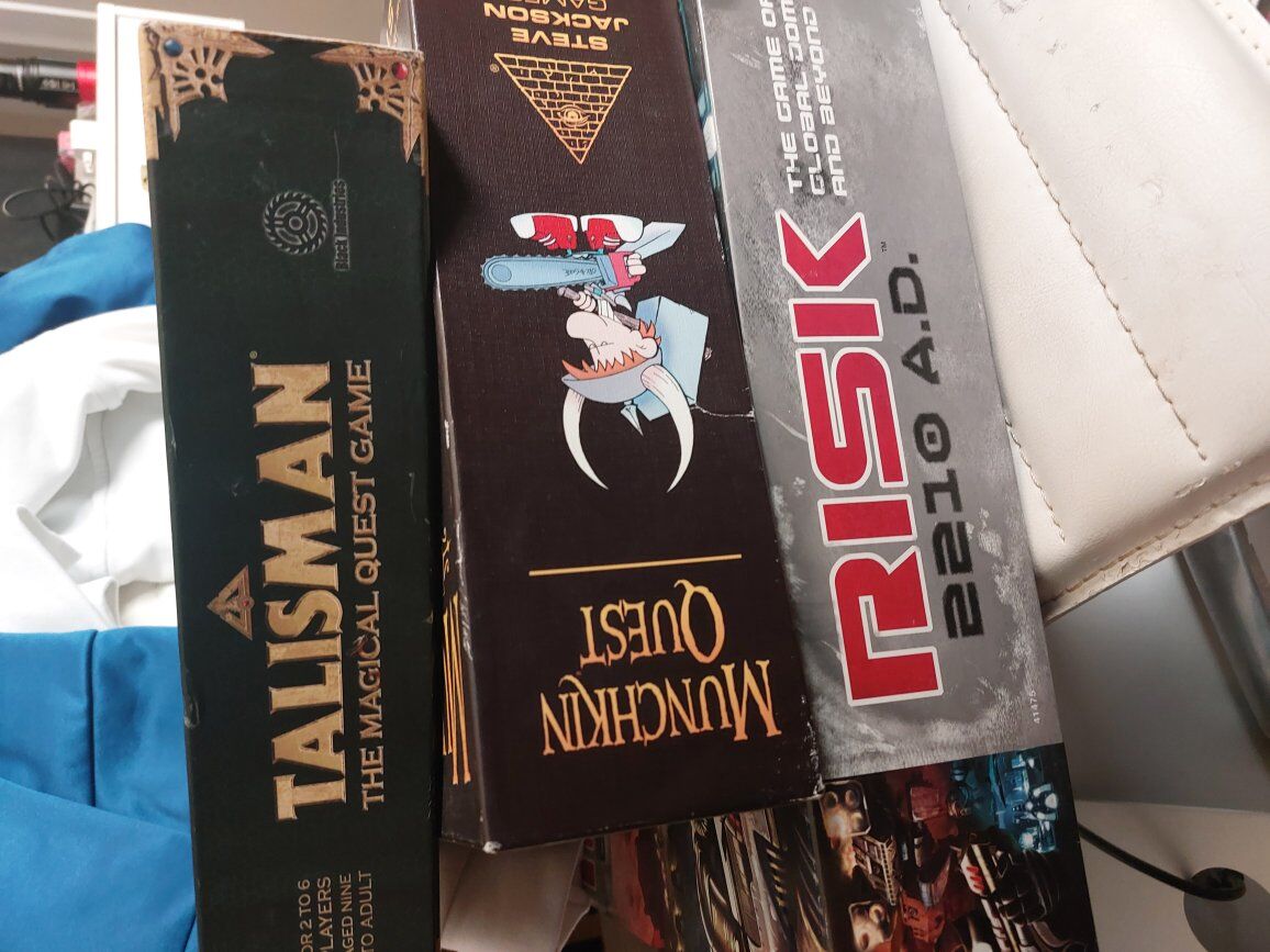 Speak It Not $10 Runebound 2nd Edition $40 Munchkin $10 Munchkin Fu $10 Munchkin Quest $10 Pahrcheesi $0 Book of Mormon Quest $10 Scene It $5 Wits & Wagers $20 Talisman $20 SOLD Risk 2210 AD $20