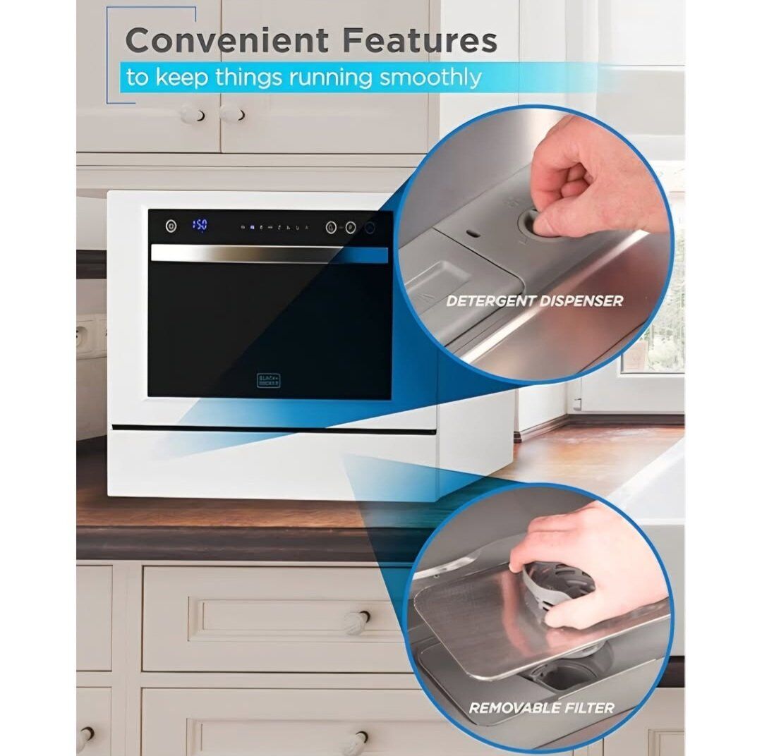 BLACK+DECKER BCD6W 6 Place Setting ENERGY STAR Portable Compact Countertop Dishwasher