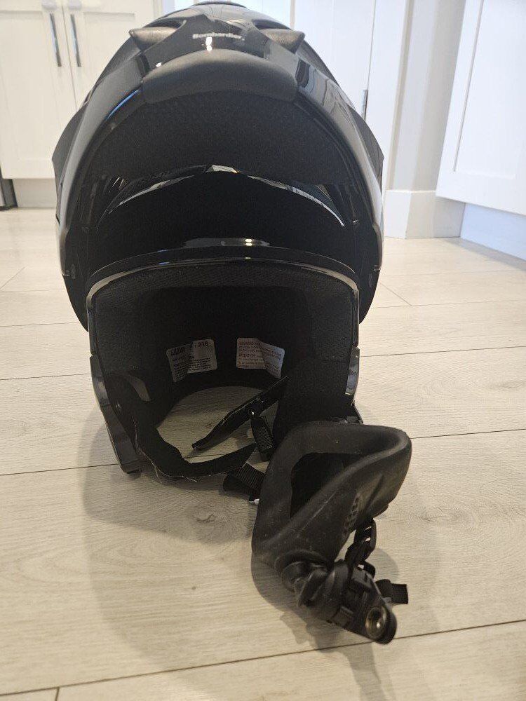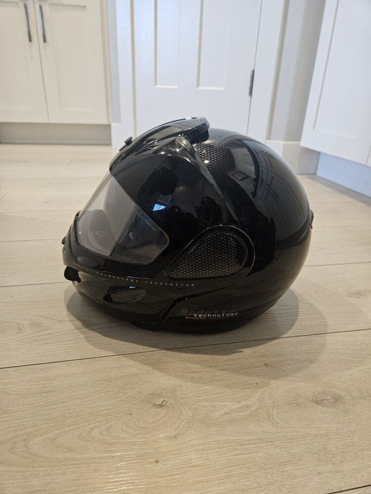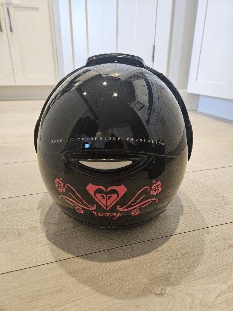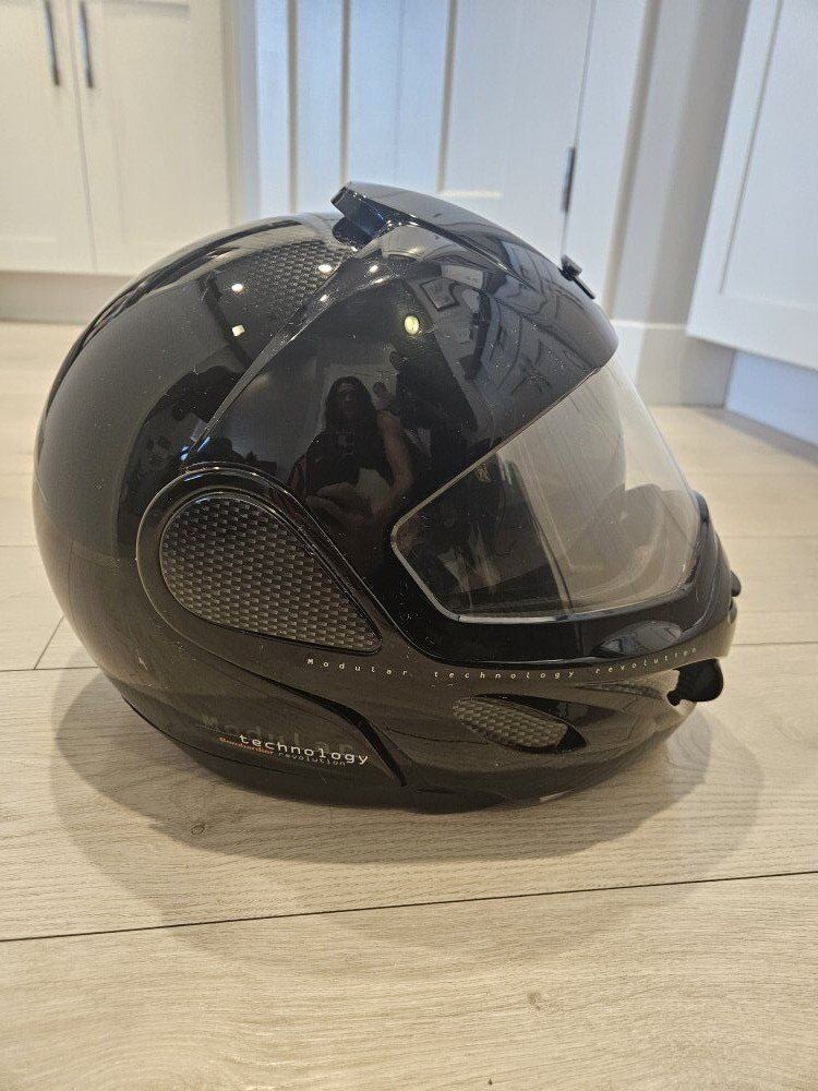 VenmoWomens snowmobiling helmet. Bombardier Modular Technology Revolution. Size extra small. there is a small Crack on the peice that comes down in the front. doesn't affect use.