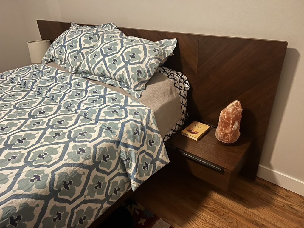 VenmoThis is a beautiful, like new, queen platform bed frame with built in side tables. No damage. Smoke free home. $1500 new