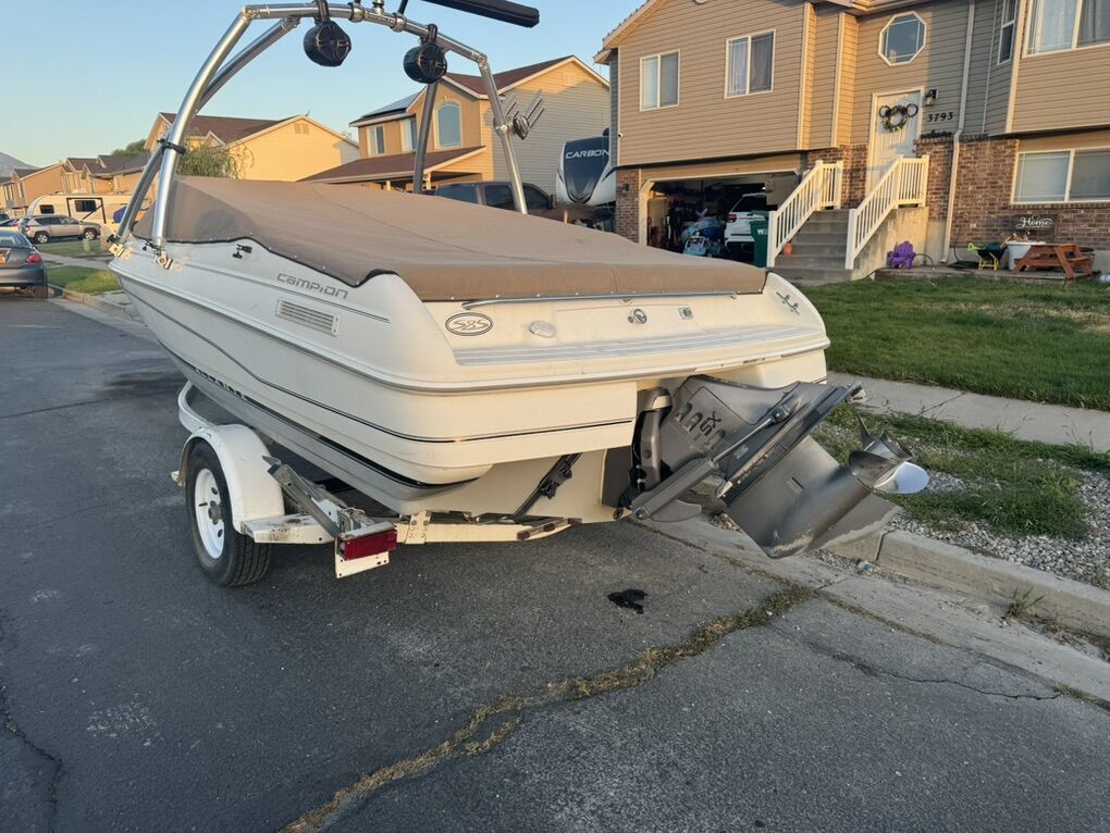 Selling my clean well taken care of 96 campion allante 585 boat. Only selling to upgrade and get I into a bigger boat for my family. I have taken it out 3 times this year and it has ran amazing each time. It has a Volvo 5.0 V8 in it with a Volvo penta sx out drive. All fluids have been changed and is ready for the rest of the season, I just installed a new boss head unit for the stereo. I replaced the exhaust bellow going to the out drive as well. Interior is in good shape! No rips in the seats. Has plenty of storage on the boat. Has a monster tower, and wake shade for the back, also have the original bimi too, Goes into gear with ease, no issues at all. Trailer has good tires in it, all light work as well. I just went through and repacked the bearings. I have title in hand for boat and trailer. Asking $6500 or obo.