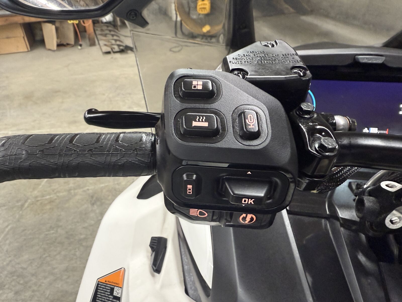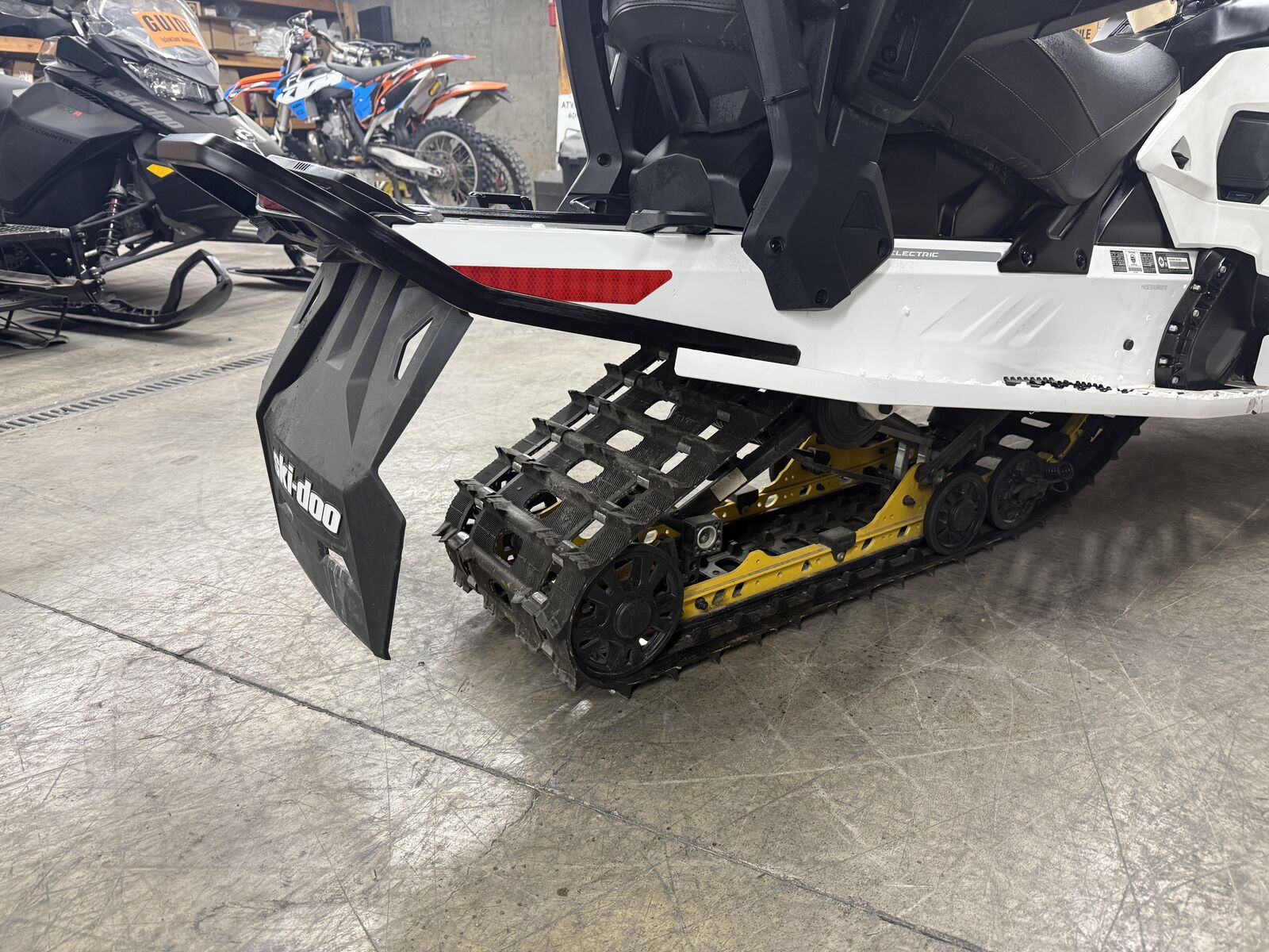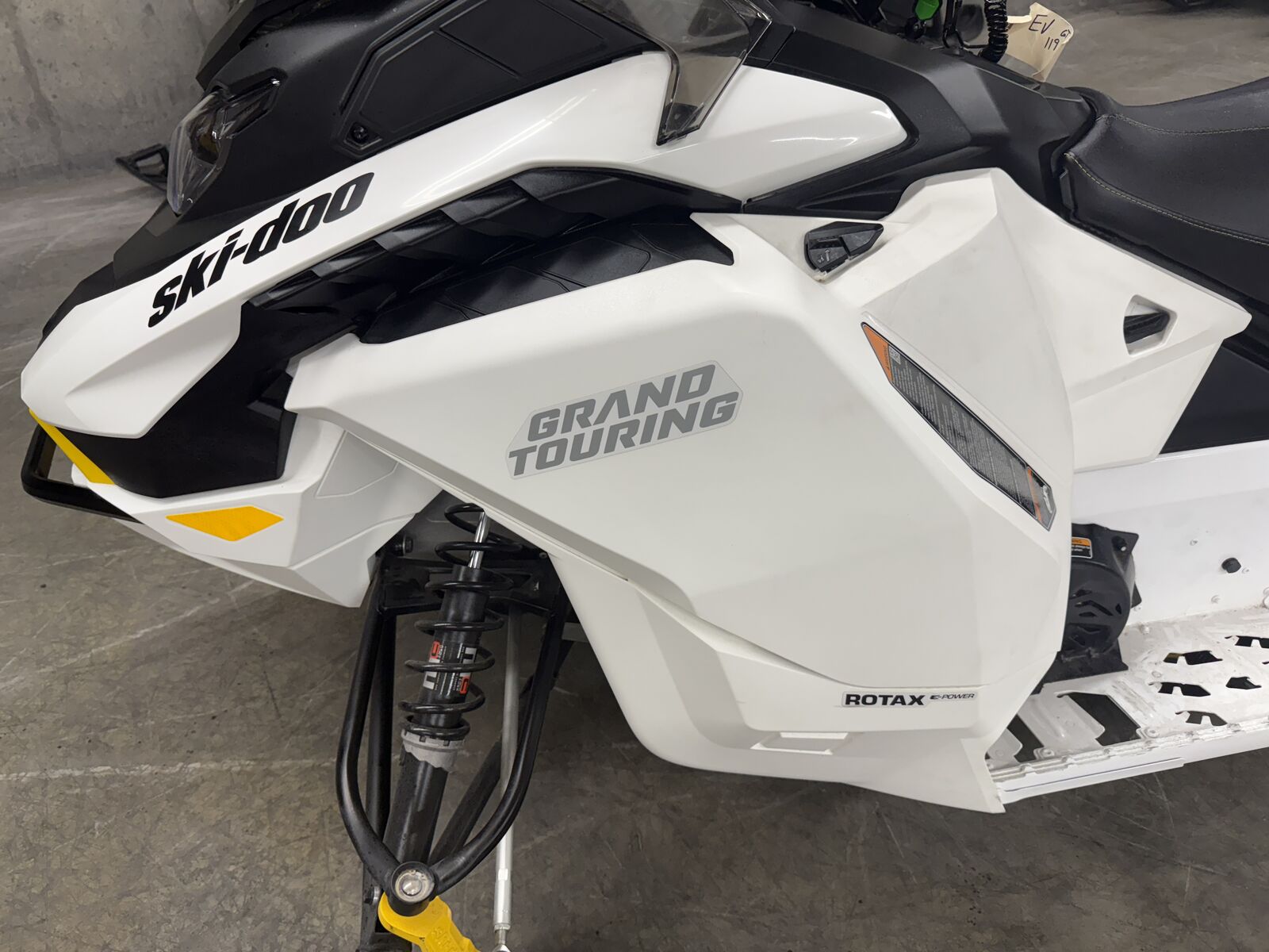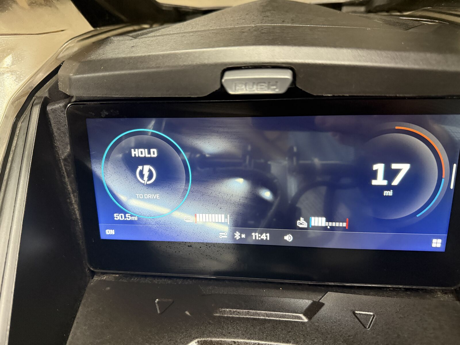 2025 Skidoo Electric Grand Touring. Rev Gen 5 platform, Large screen, zero emissions and completely silent. Comfy ride with heated grips for driver and passenger, large screen that can connect to BRP Go, and has around a 30 mile range. Has 50 miles from testing with a couple different ski resorts