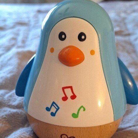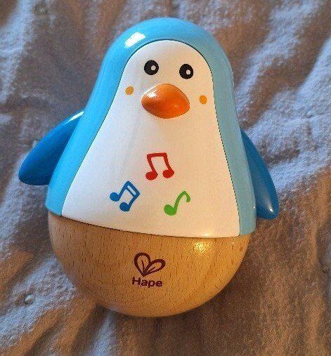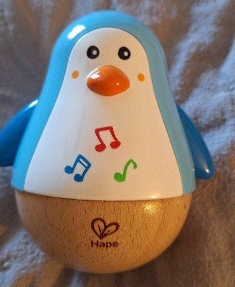 The Hape Penguin Musical Wobbler is a colorful, penguin-shaped musical toy designed for babies and toddlers aged 6 months and above. It features a roly-poly design that wobbles and emits soothing tinkling sounds when pushed, captivating young children and encouraging sensory development.