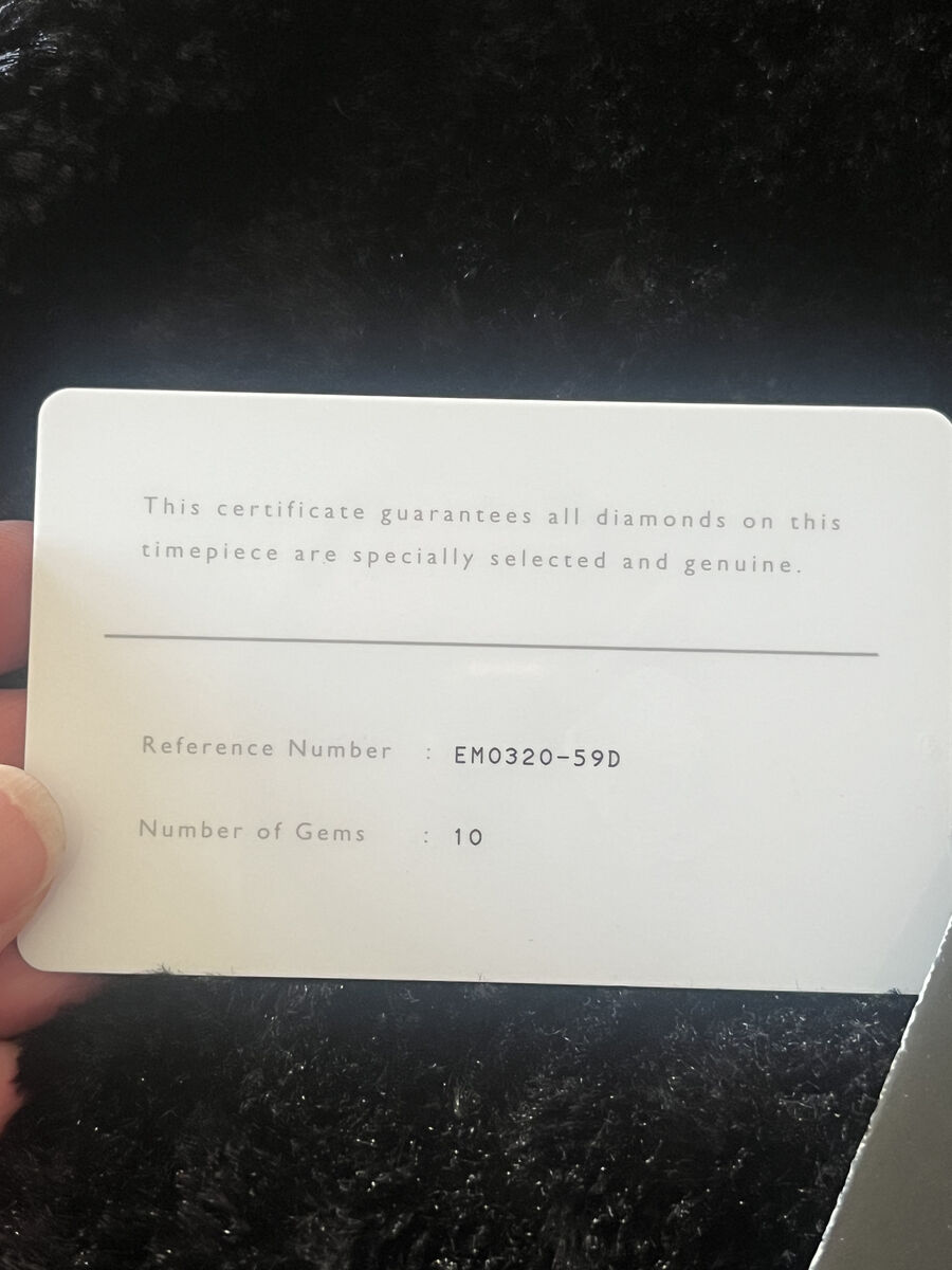 ApplePayBeautiful stainless steel watch with mother of pearl face accented with diamonds on both the face and three “floating” diamonds set on the bezel. Ten diamonds in total. This is one of the Echo Drive series and never requires winding or batteries, they are powered by any source of light. Comes with Container and card of authenticity.