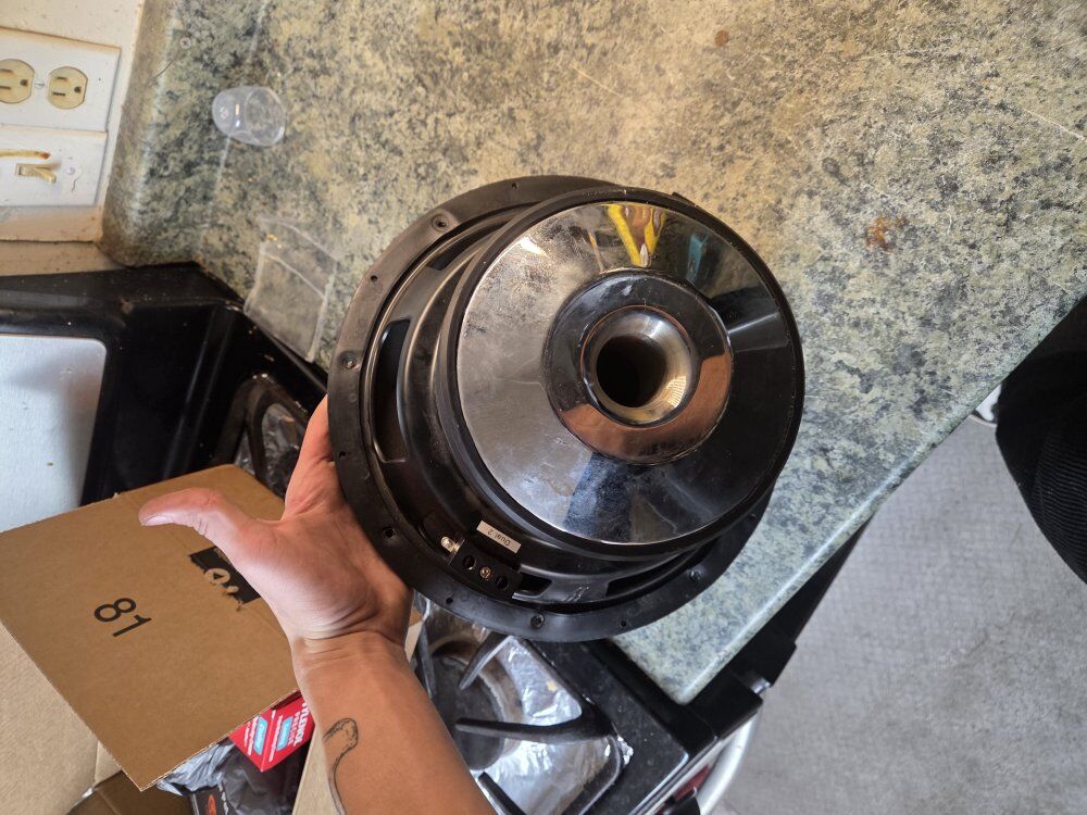VenmoI Have a re audio sr 1200w max 600 rms basically\nBrand new I hooked it up to a 500 watt max amp and she bump really good than i found a really good deal on two 12s so I dont need this any more would be a good little starter subwoofer or if you just want a little bit of bump to your music , it would work perfectly 100 obo or trade for other subwoofers amps js car audio in general