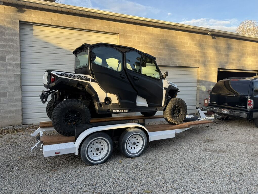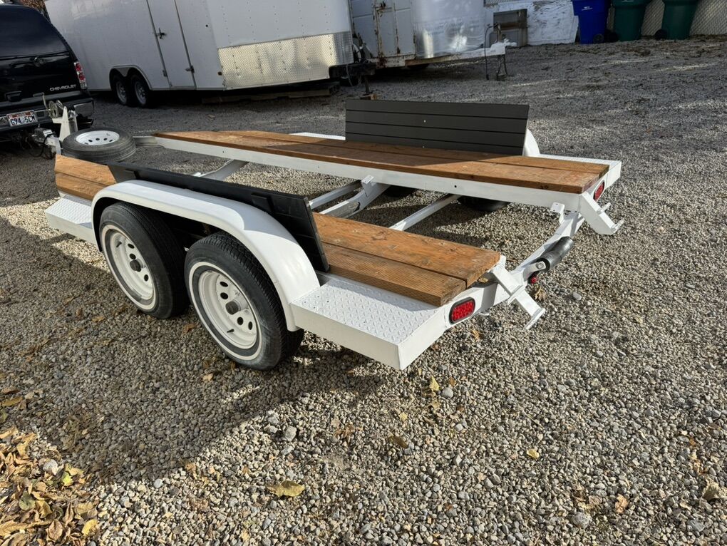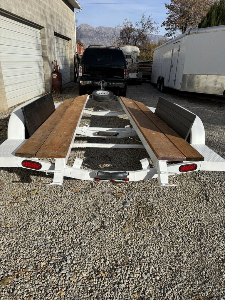 Tandem axle, side-by-side trailer for $1,350. Built-in ramps and lights work. 74” between fenders and can handle up to a 14’ sxs wheelbase length. Located in Lehi. Call or text 801-602-2002