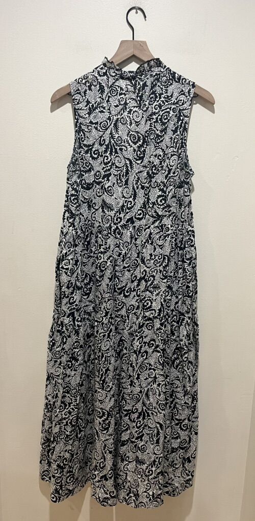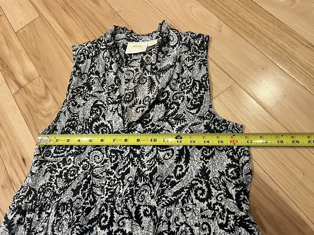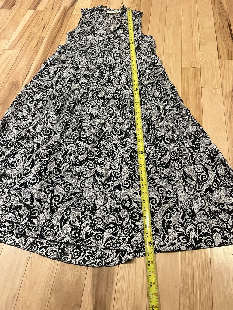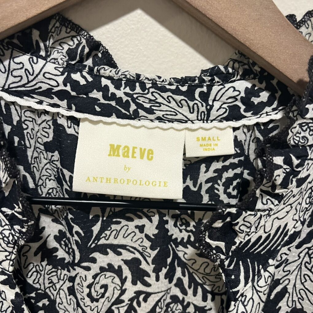 Maeve by Anthropologie Marya Tiered Black and White Long Maxi Dress - Women’s Size Small - sleeveless with split neckline, empire bodice, pockets and lined skirt - excellent condition - pre-owned.