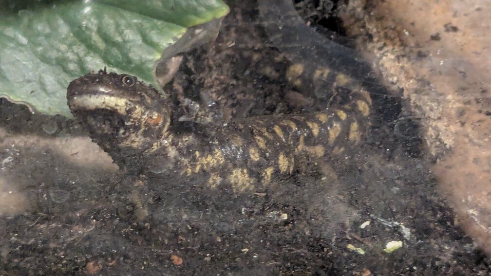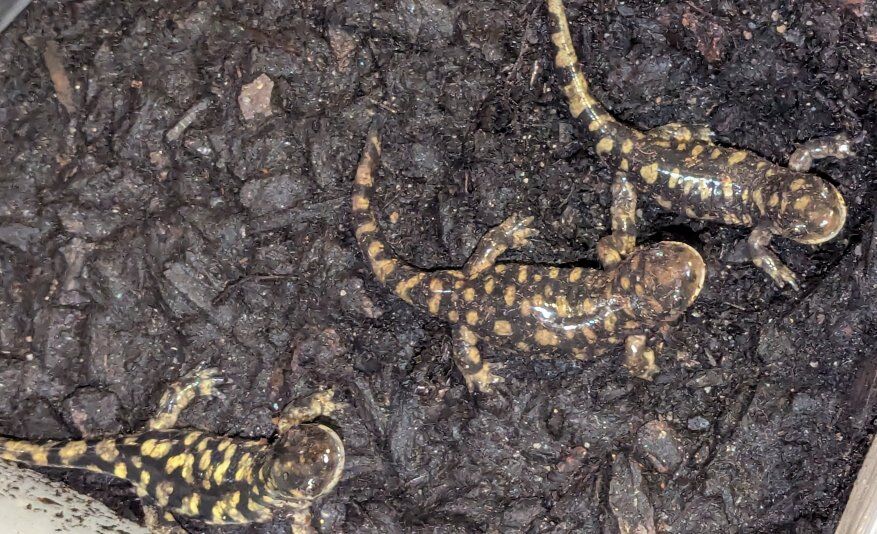 These juvenile tiger salamanders (Ambystoma mavortium) are all still small and one of them is still a larvae/tadpole. These little guys make amazing, low maintenance, and personable pets that are great for new and experienced pet owners. They all are really calm around humans and not only that but I have trained each of them to be hand fed so they often follow people around their tank hoping for a snack! They are a lot of fun to watch and interact with. Currently they are all only a few inches long but can easily grow up to several inches - almost a foot long when fully grown. They need tanks with lots of soil for burrowing and a water dish or aquatic section as well.