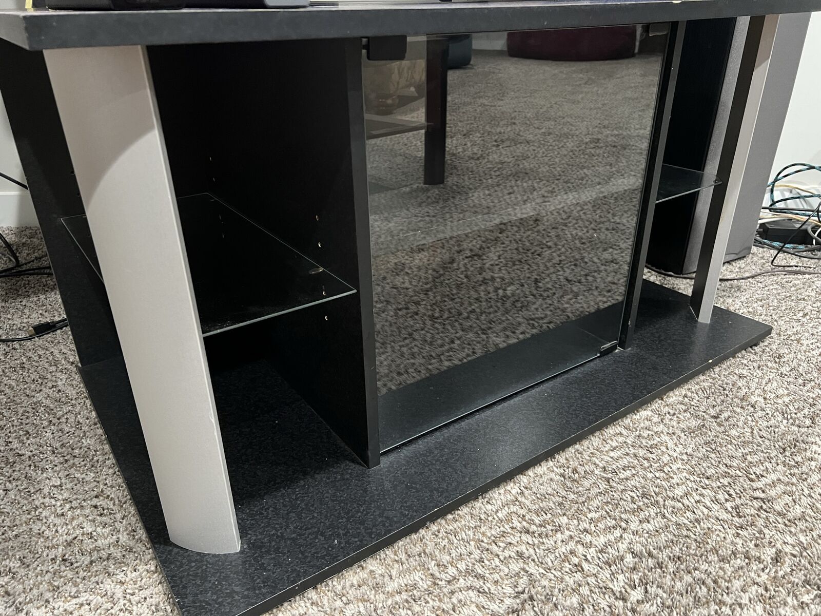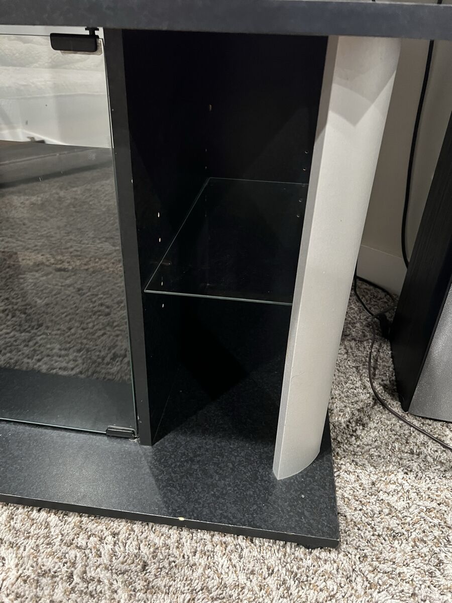 For sale is a TV stand that has been solid since the day I’ve purchased it. It’s complete with a glass cabinet and glass door. Good condition. No trades please, and cash only.