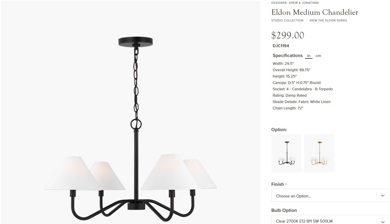 ApplePayDrew & Jonathan Eldon Medium Chandelier Black & White