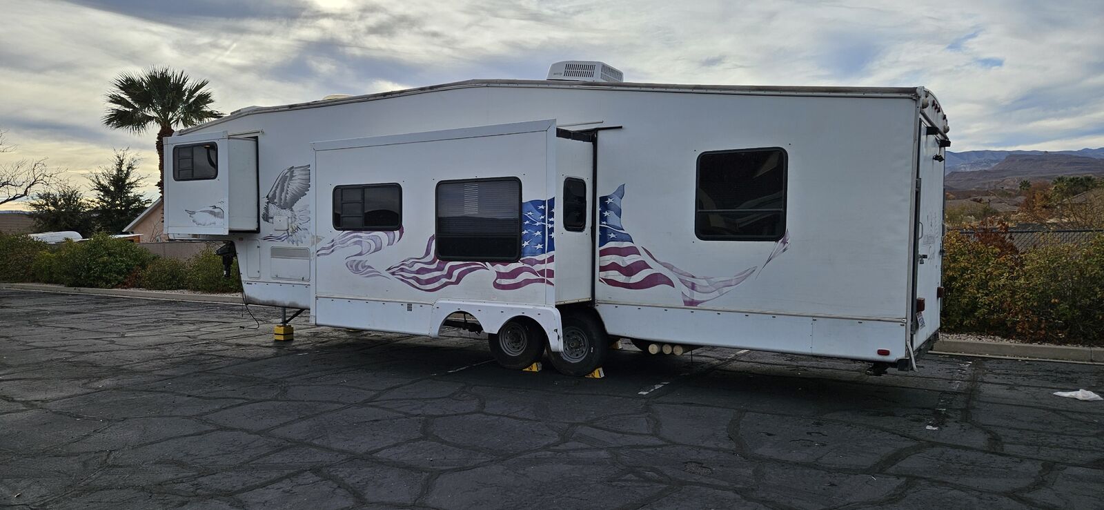 2005 All American sport toy hauler. We have loved this trailer and have taken it many places. It has a 10' garage on the back. The trailer is 40' long and has 2 slides creating a lot of space. The trailer is heavy but our 2500 ram pulled it just fine. Dry weight is 11550 and GVWR is 16,700. Fresh water has 2 - 45 gallon tanks. The hitch is an upgraded model with an air bad and shock that helps reduce the shock into the truck. It has also been converted to gooseneck. The trailer tires are 1 year old G rated tires. The axles themselves have been replaced by the prior owner and trailer brakes work great. I installed a 200ah lithium battery and a large inverter. Its plenty to run my coffee pot multiple days without external power. The landing gears have also been upgraded to independent electric motors that make leveling out the trailer so easy. Tons of space in the outside cabinets. The couch in the living room is a pull out, I also just installed a new queen mattress in the master. A/c unit, heater, stove all works good, has an upgraded water pump in it for additional pressure. The roof has been resealed so its water tight. I also have all of the covers for the outside windows, A washer dryer combo, A new spare tire and rim, 2 propane tanks - full, and a window a/c unit I will include with the trailer. The trailer is older and does need a little work though. The fridge is erratic, freezer works every time though. The awning is gone. Wall paper is peeling and general cosmetic issues. The kitchen faucet handle has bound up. I have a new one just have not installed it yet. Call or text me with any questions (801-857-5544). I will deliver within saint george at no cost.