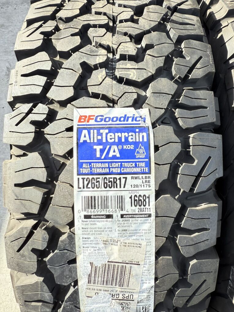 Venmo2 tires only 265/65R17 Bfgoodrich Ko2 Load E Brand New $500 Text anytime 385-402-2292