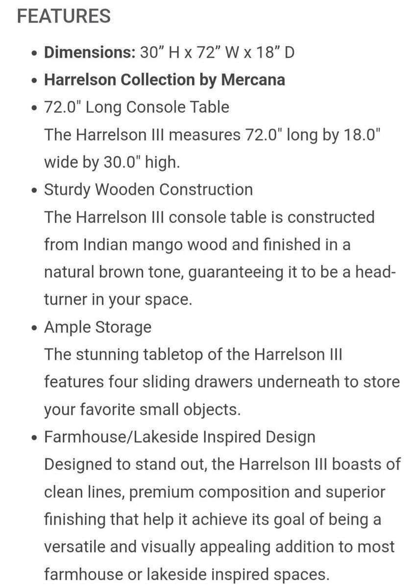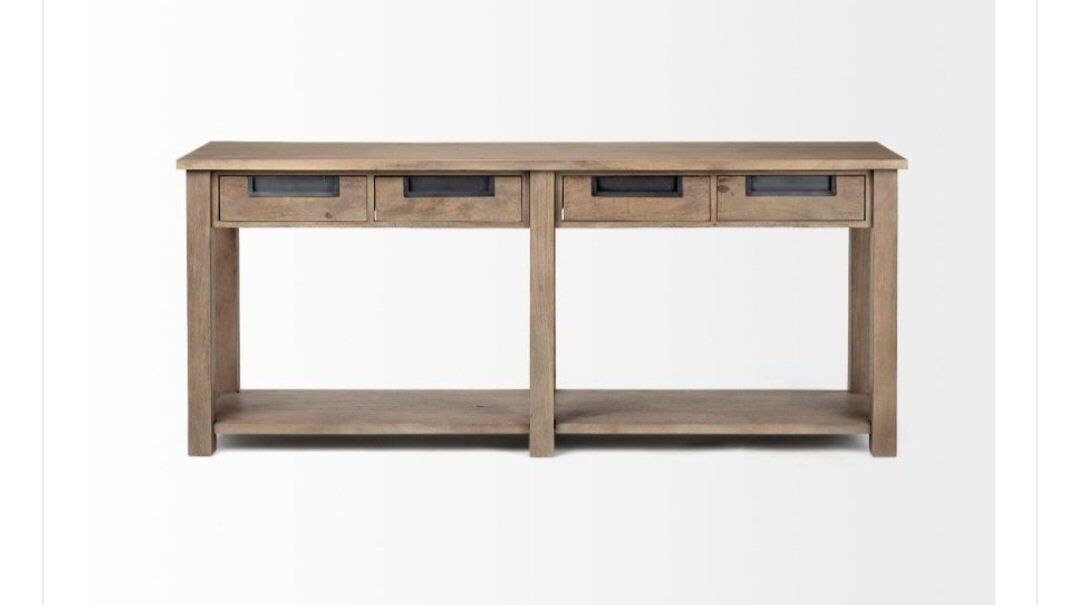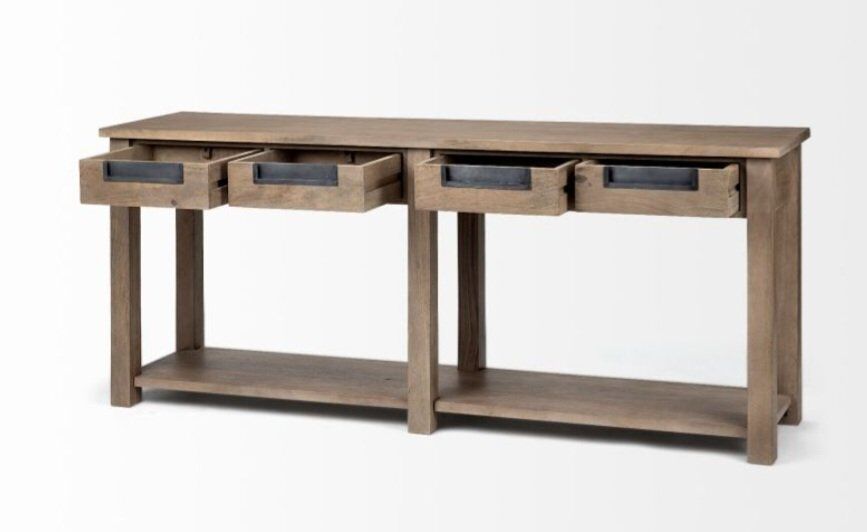VenmoBrand New Mercana Harrelson III Brown Wood 4 Sliding Drawers Console Table with Shelve.