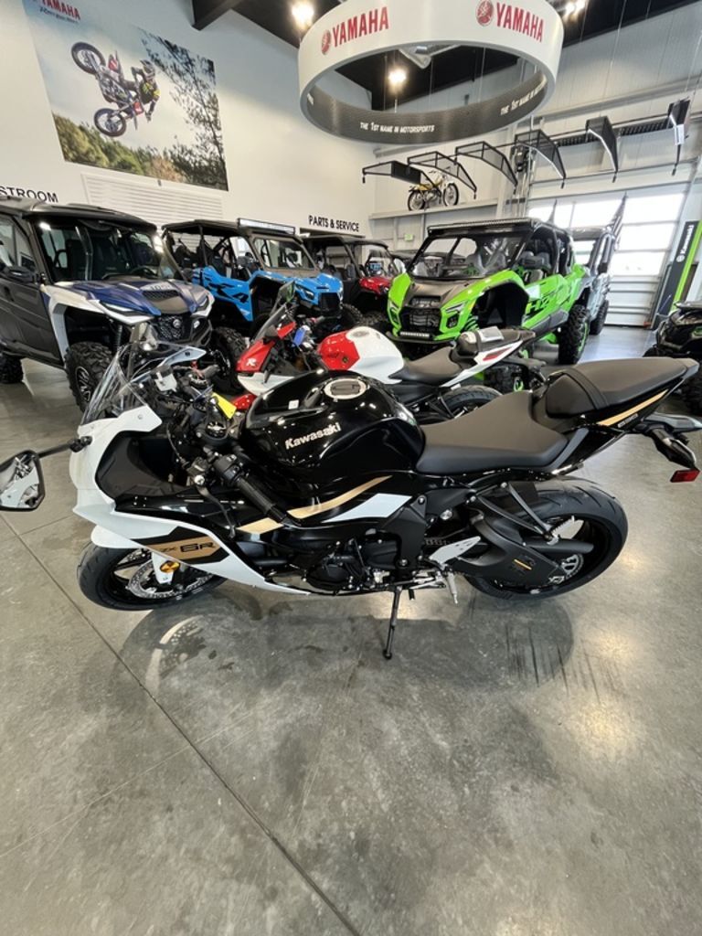 2026 Kawasaki Ninja® ZX™-6R HIGH-PERFORMANCE PRECISION Features may include: POWER FLEX ON THE STREET & TRACK Powered by a potent 636cc engine and advanced performance technology, the Ninja® ZX™-6R supersport motorcycle delivers legendary Ninja® power on and off the track. HANDLING PRECISION PERFECTED The Ninja® ZX™-6R motorcycle gets ahead of sharp turns with optimized engine performance across the entire rpm range, class-leading components, and advanced rider support technology. STYLING BEAUTIFULLY AGGRESSIVE The Ninja® ZX™-6R supersport motorcycle features smooth-flowing supersport styling with 3D interwoven bodywork. ADVANCED TECHNOLOGY HIGH-TECH SUPERSPORT Race DNA and advanced technology is what the Ninja® family is known for. So it comes as no surprise that the Ninja® ZX™-6R supersport bike features the advanced technology and performance you expect from a Ninja. ADDITIONAL: Distinct Ninja® Styling Kawasaki Intelligent anti-lock Brake System (KIBS) TFT Color Instrumentation All-LED lighting Pressed-aluminum perimeter frame Pirelli Diablo™ Rosso IV tires
