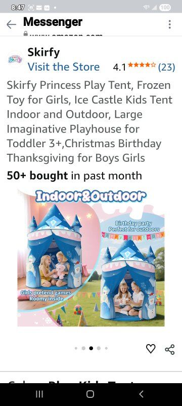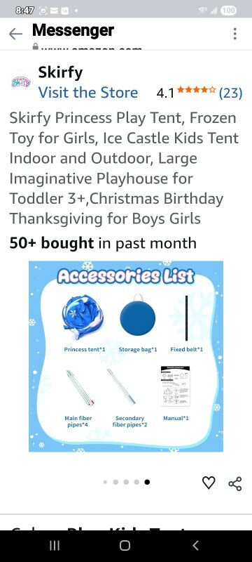 Indoor & Outdoor Fun: Whether it's at home, in the park, or at kindergarten, this kids' playhouse offers a versatile space for your kids to play, nap, and read. This fun play tent for kids ages 3-4 6-8 serves as a constant haven for all their activities.Great choice for birthday,Thanksgiving,Christmas,Kindergarten playhouse,party playhouse. Quick Tool-Without Assembly: This kid's play tent for ages 4-8 is much easier to set up without tools! Parents can even involve their children to assemble together, helping them develop hands-on skills and strengthen the parent-child bond (Included detailed step-by-step manual and video instruction) Premium Material: Peach-skin fabric insteand of polyester fabric,which is more waterproof and Wrinkle-free.Skirfy toddler play tent for toddlers 3-5 with breathable texture, durable for indoor/outdoor use. This kids playhouse boasts a robust structure to ensure safety while offering a secure space for your children's imaginative adventures. Portable Design: This indoor & outdoor toddler play tent comes with white-handled blue storage bag (folds to 22"×6" / 56×15cm), perfect for travel/camping.This princess tent for girls sized at 41.3"×64.2" (105×163cm). Complete Set: The tents for kids included:1×Tent,4×Main Poles,2×Small Poles,1×Instruction Manual,1xCarry bag