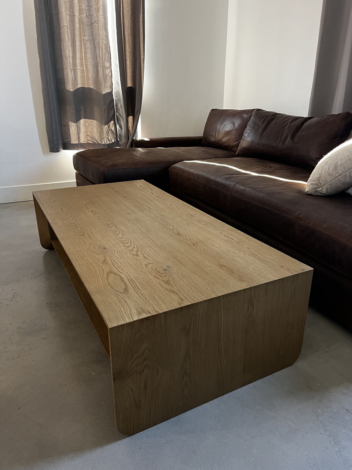 In amazing condition, no stains or damage. We decided to go a different direction. In color light oak, no longer sold.