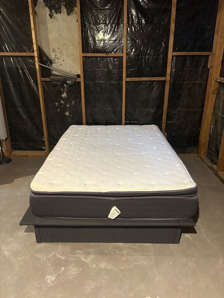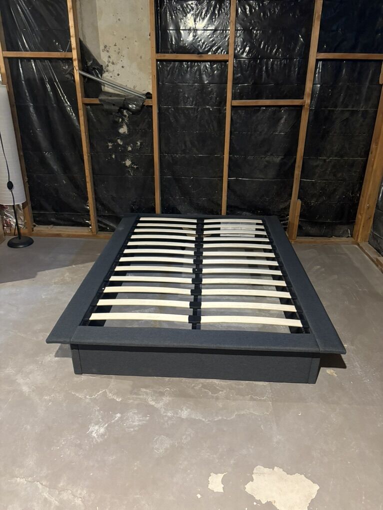 VenmoFull size bed frame with mattress and 3 inch memory foam topper. The bed frame is a grey linen color and the dimensions are 75” W x 54” D x 11” H and weighs 62 pounds and it can hold 450 pounds. It’s been great . I’m asking $125 or best offer. Need gone asap ! Please let me know if you’re interested!