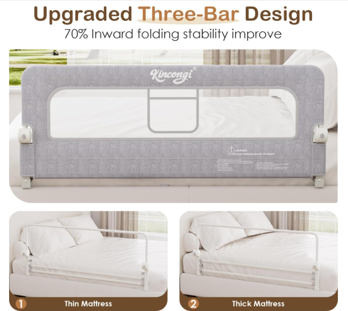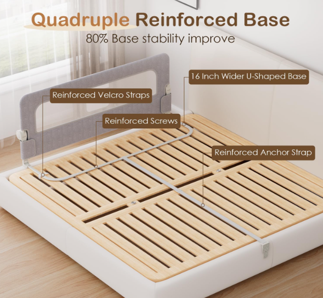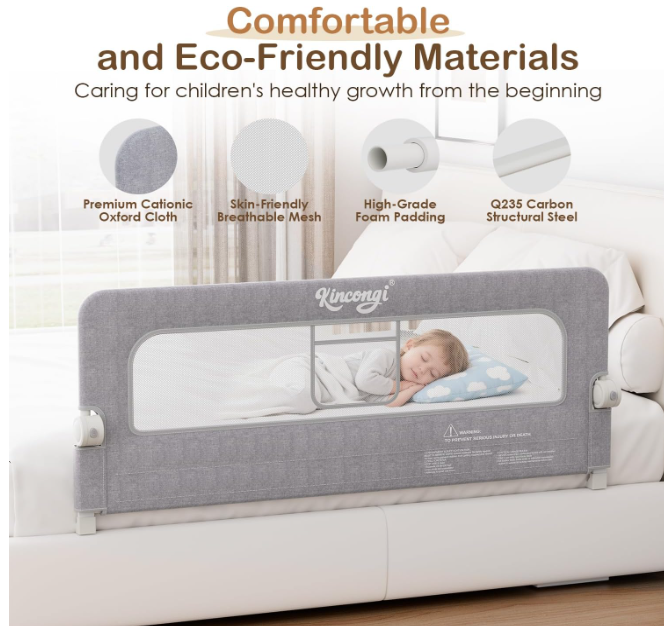 Ultra-Soft & Breathable ComfortThis baby bed rail guard features premium cationic oxford fabric with plush foam padding and breathable mesh panels, creating a cozy, skin-friendly surface your child will love to snuggle against.