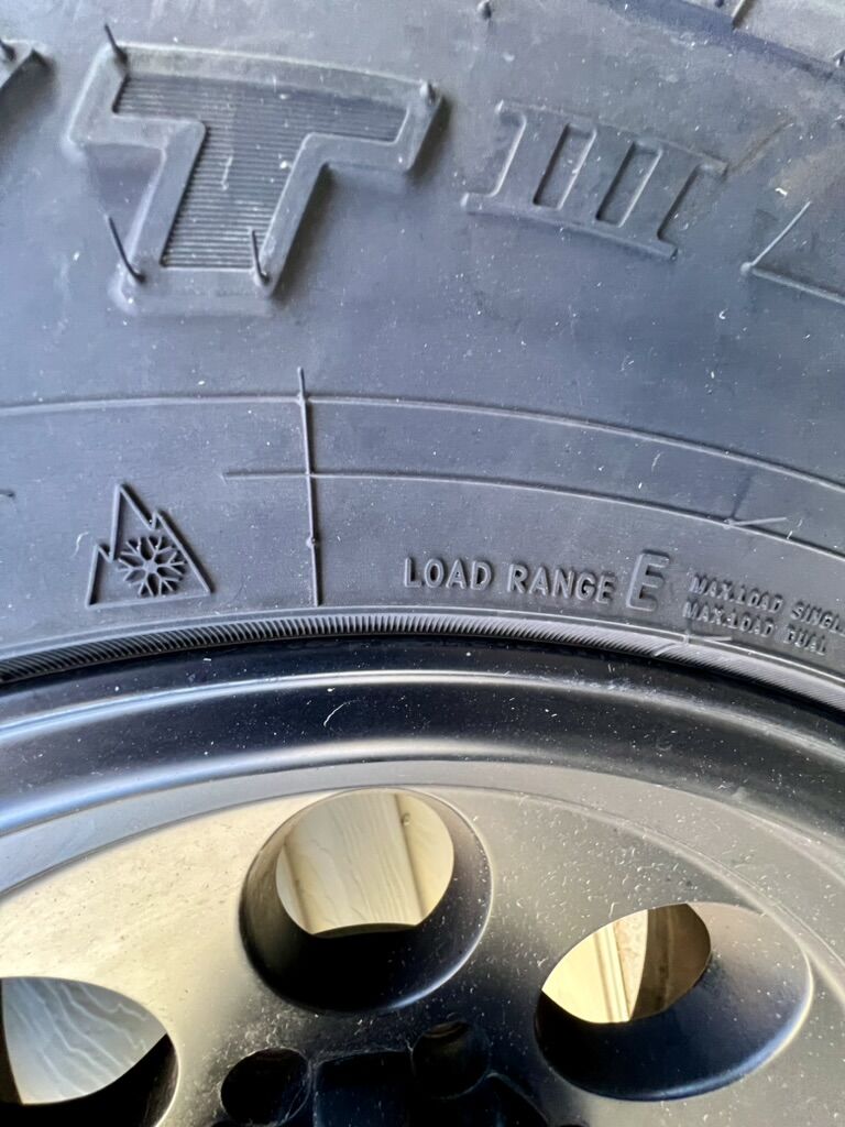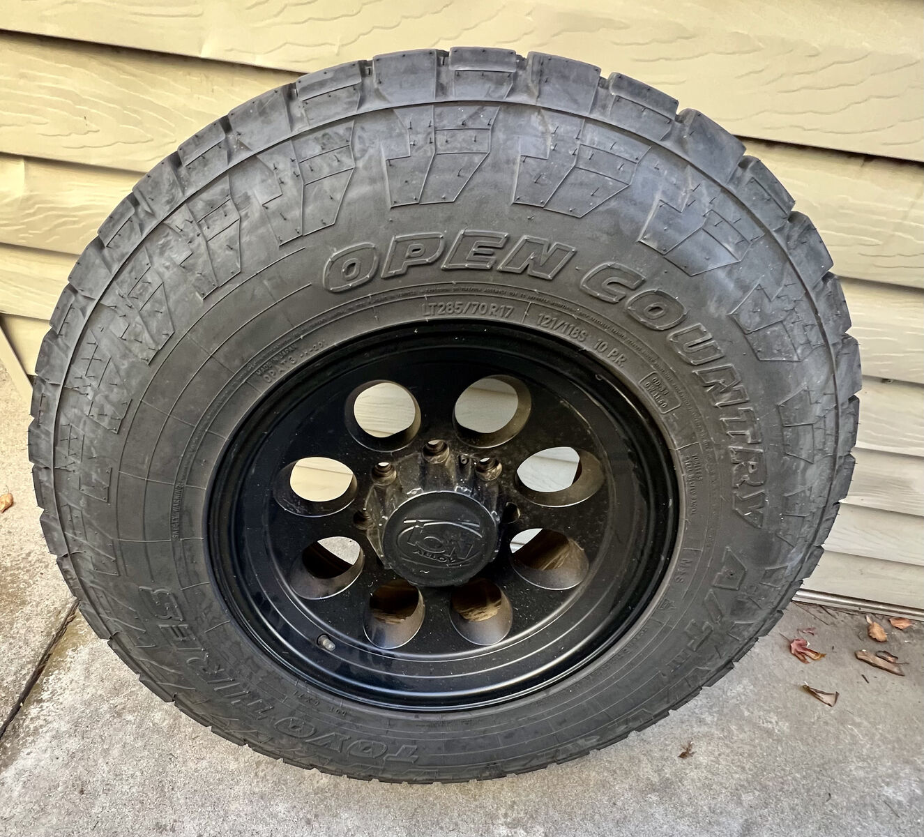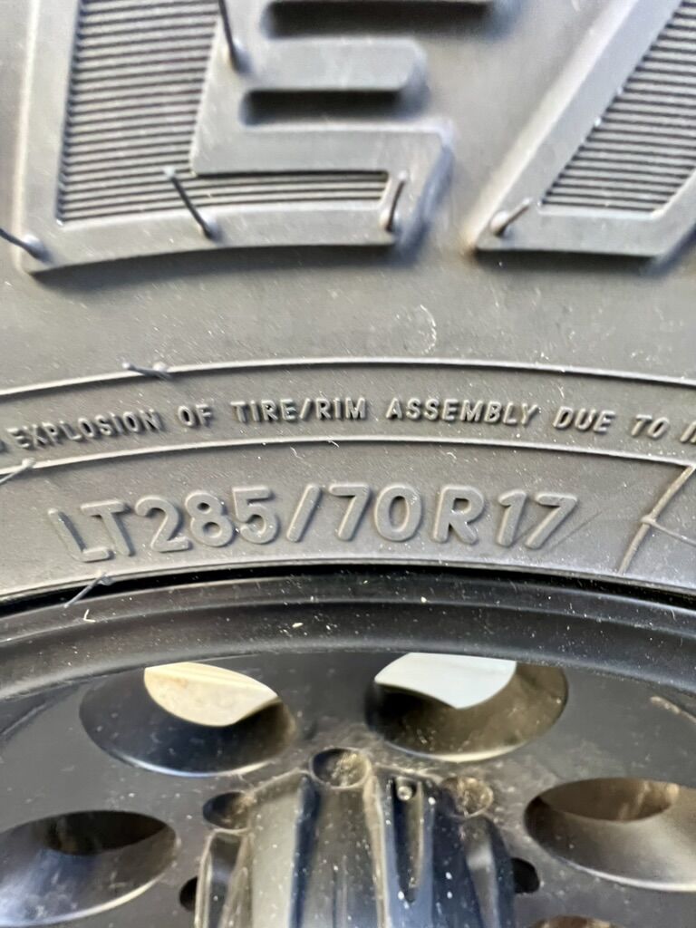 Toyo 285 70r/ 17 Open Country A/T Tires on ION Alloy Wheels with 8x6.5 bolt pattern.